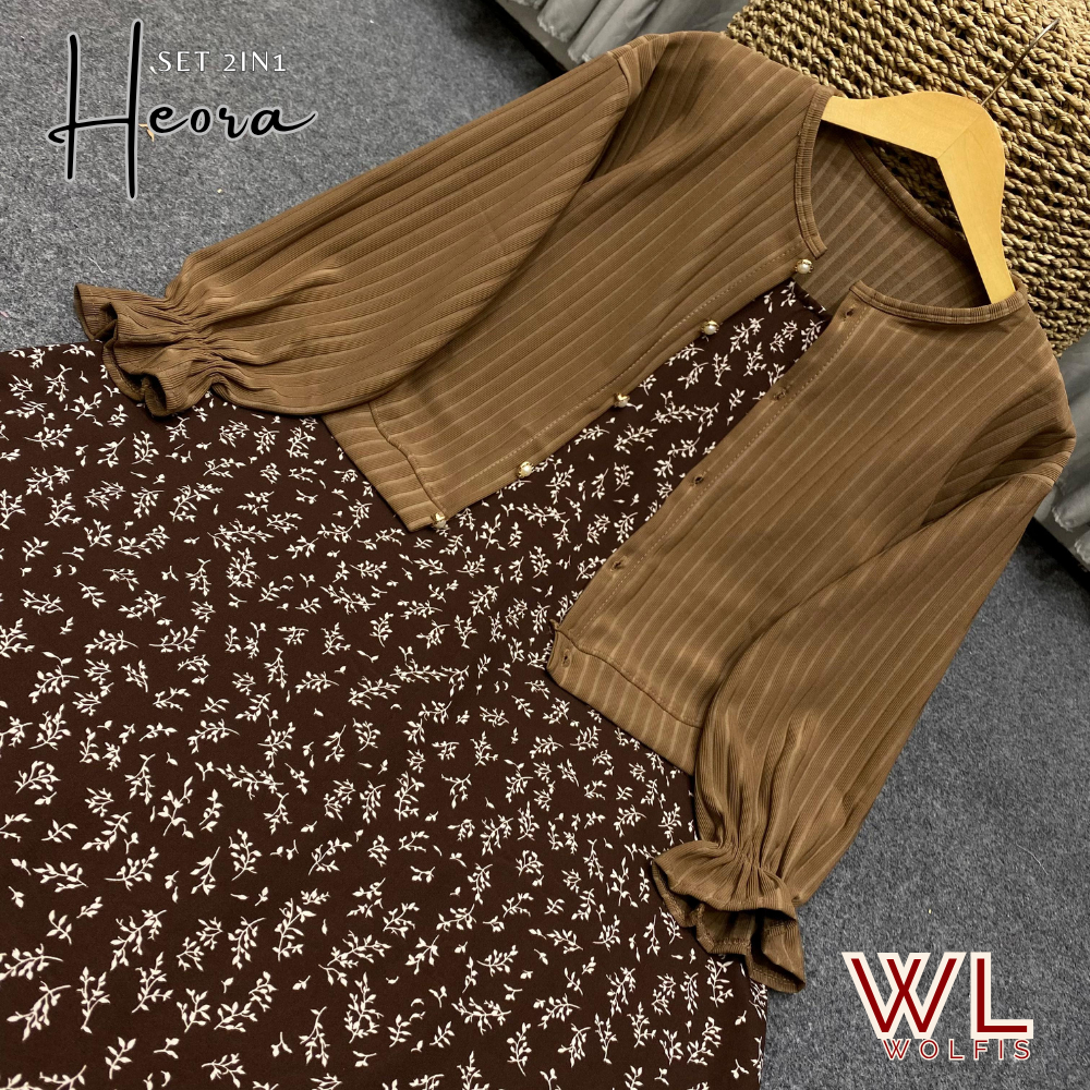 Setelan Cardi Knit Hornet + Overall Dress Motif Floral Korean Style / Set Cardi OneSet Kekinian Cardigan + Yubi Sloopy Motif