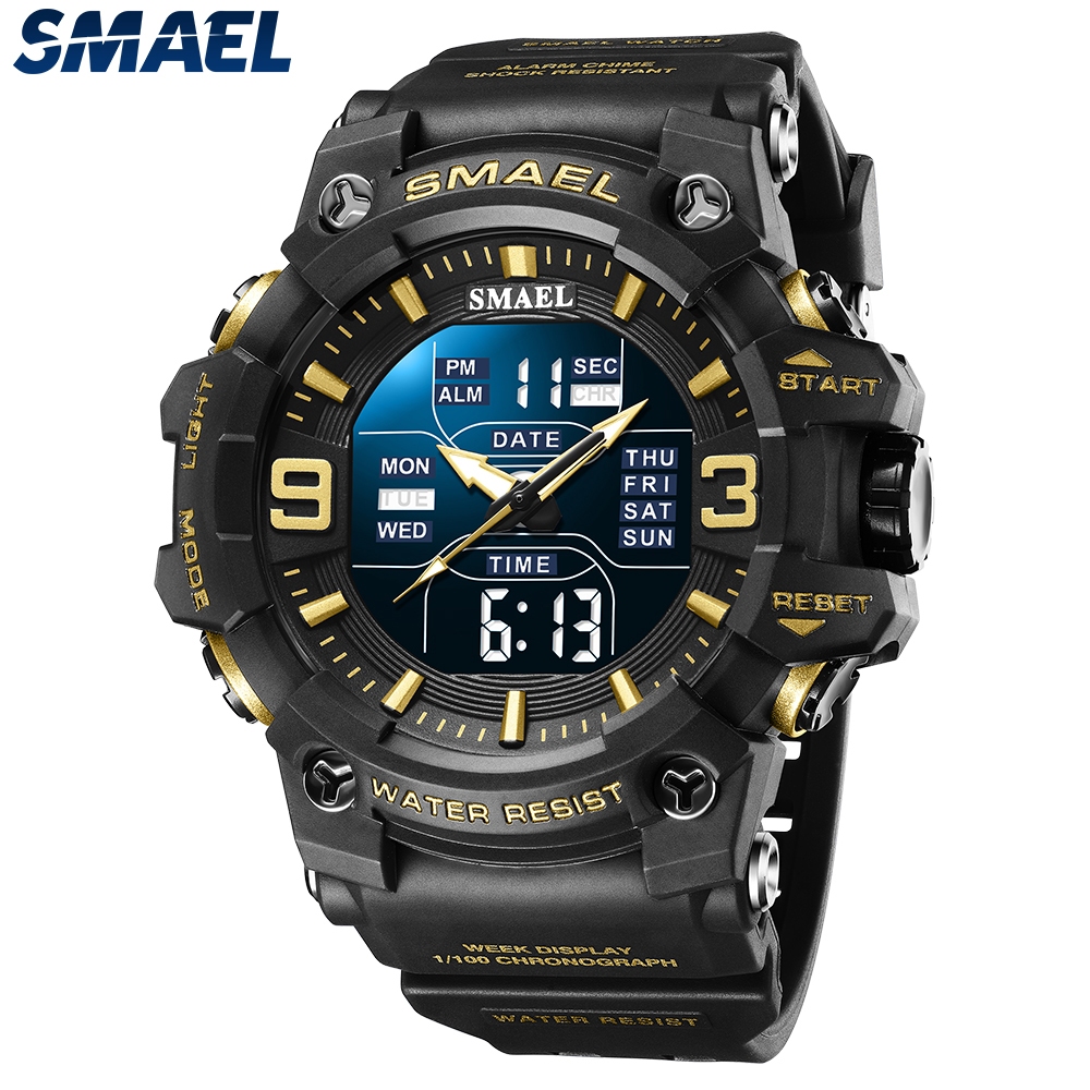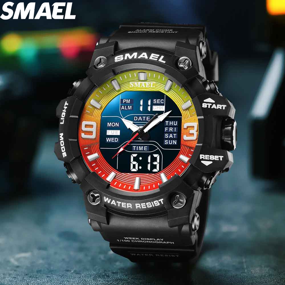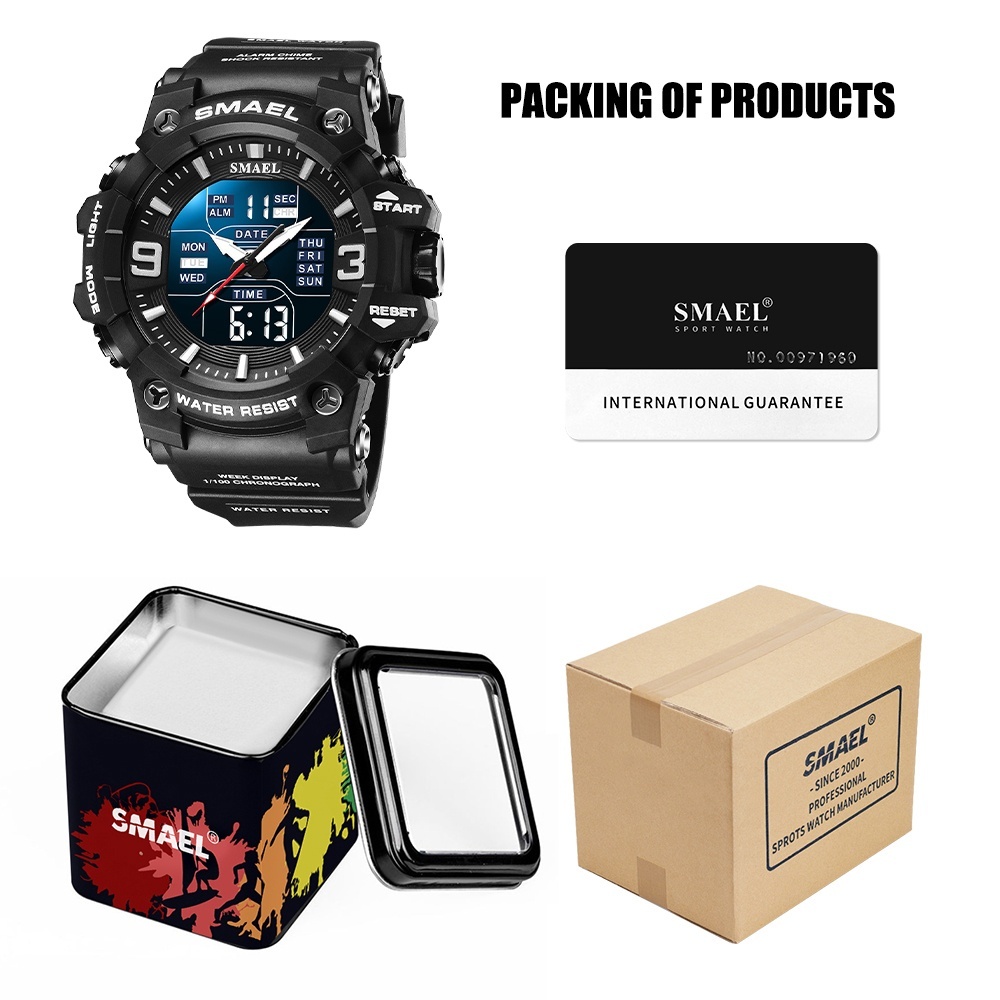 SMAEL 8049 Jam Tangan Elektronik Tahan Air untuk Pria, Multifungsi dengan Lampu Penerangan dan Alarm