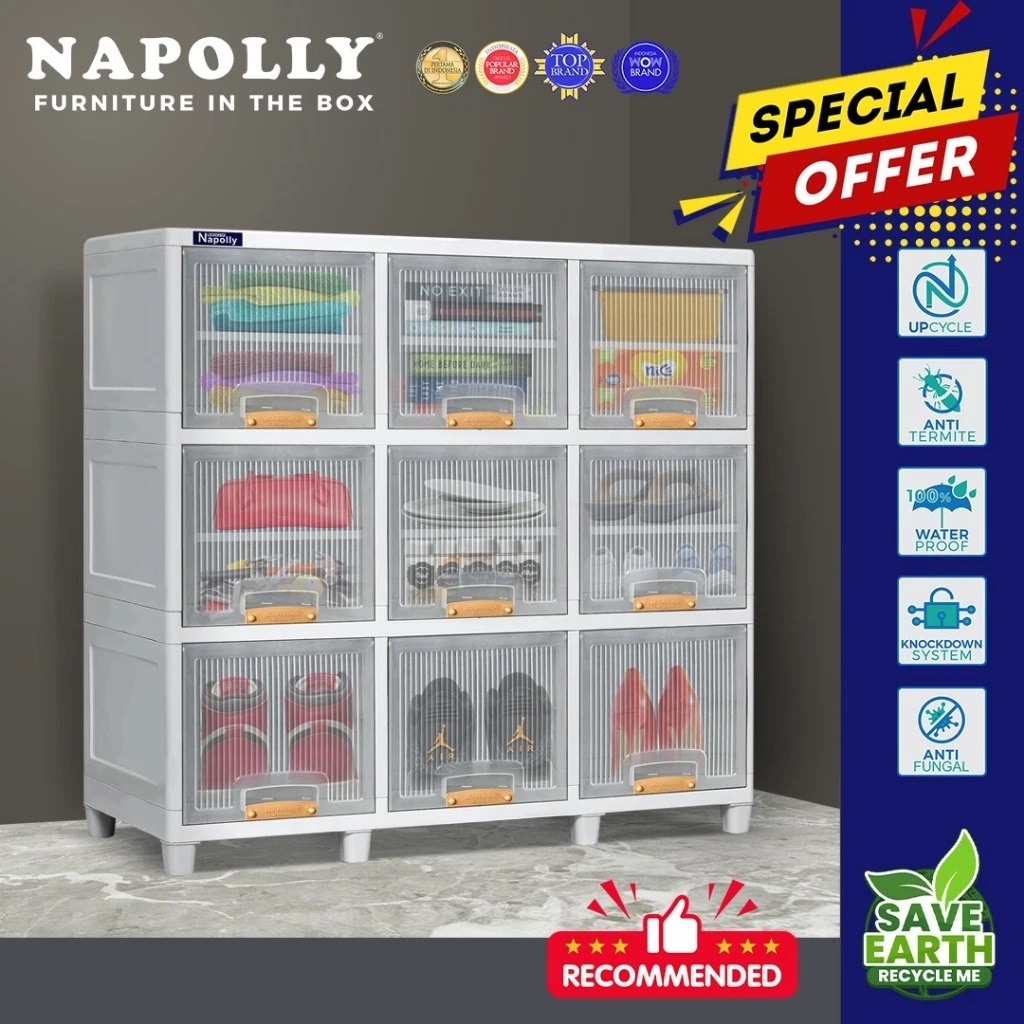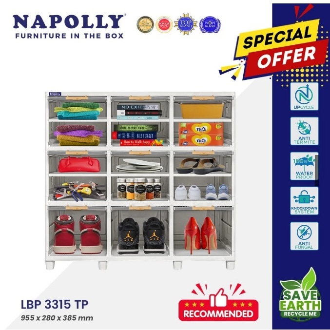 Lemari Plastik Serbaguna NAPOLLY LBP 3315 TP / LBP 3312 TP Tempat TV 6 Laci 9 Pintu Transparant