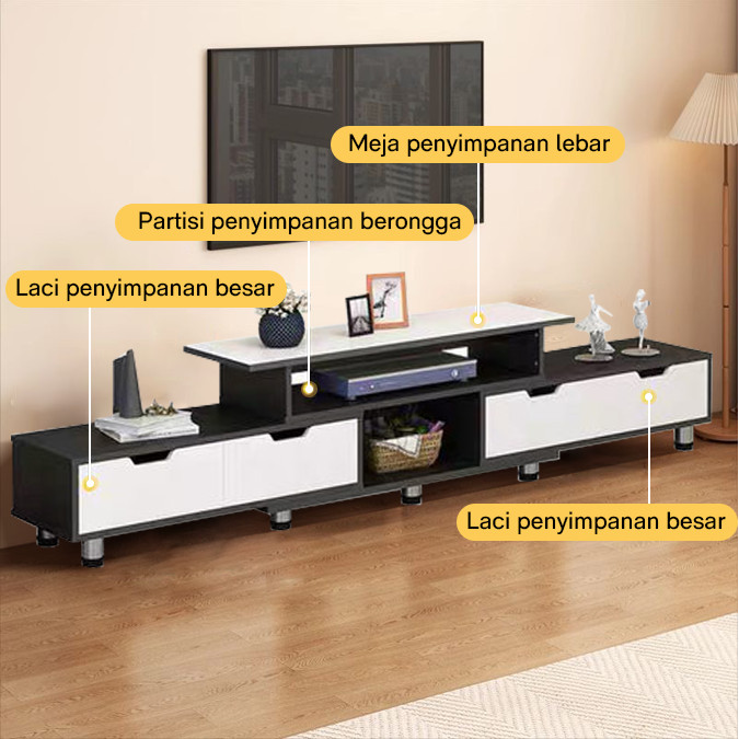 ☕Variabel 1.2-1.9m☕Meja TV Modern Kayu+Logam Aesthetic Lemari TV Ruang Tamu Rak TV Minimalis Bufet Kabinet TV Serbaguna Lemari Byn