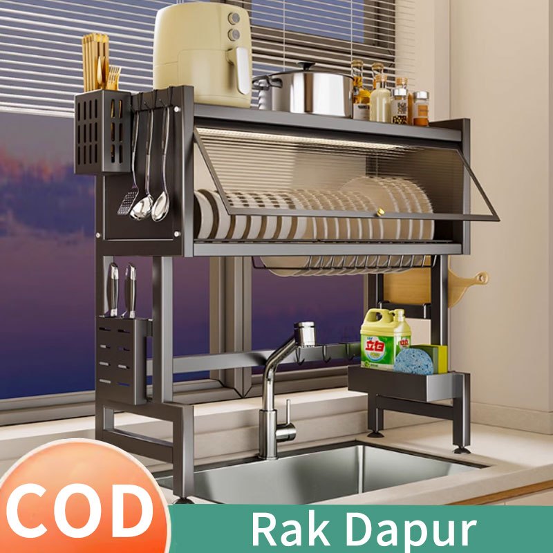 SUS 304 Rak Piring Wastafel Dengan Kabinet Rak Piring Wastafel Dapur Stainless Steel Multi-fungsi Dengan Penutup