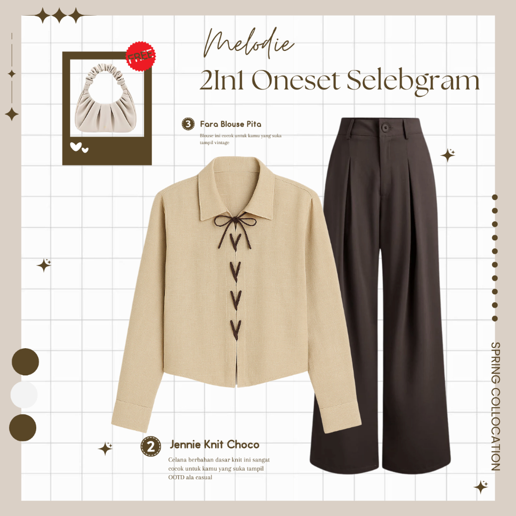 Outfit Selebgram Wanita | Bella Square, Fara Blouse, Celana Kulot | One Set Wanita Kekinian - MO36