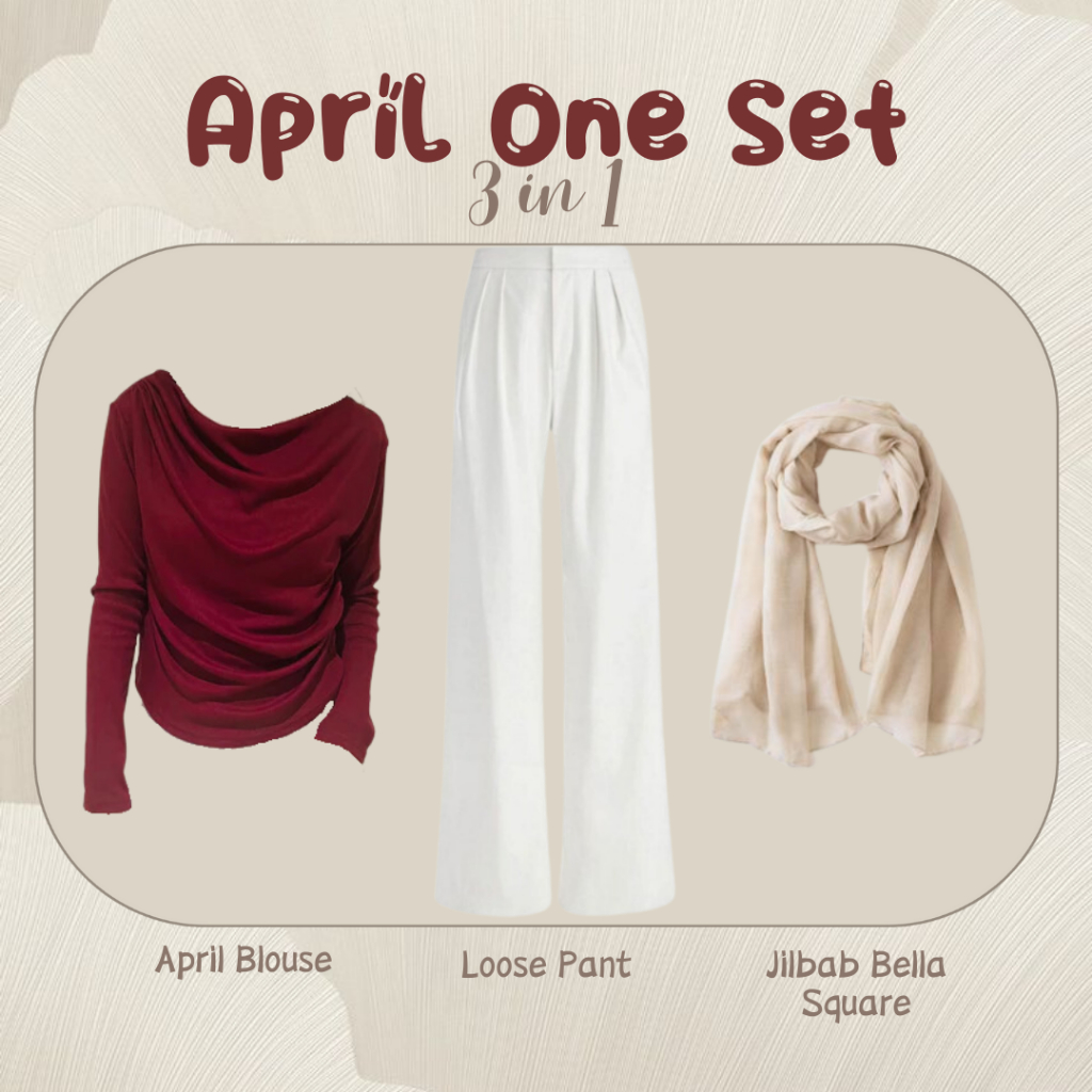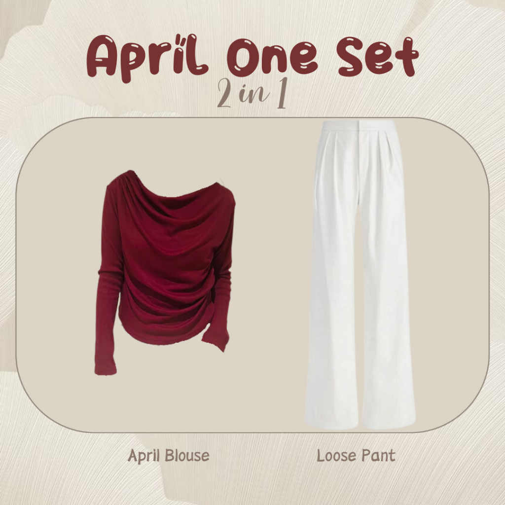 One Set Wanita Korean Style Blouse Blouse Kekinian (April Top + Loose Pants + Bella Square) LP049