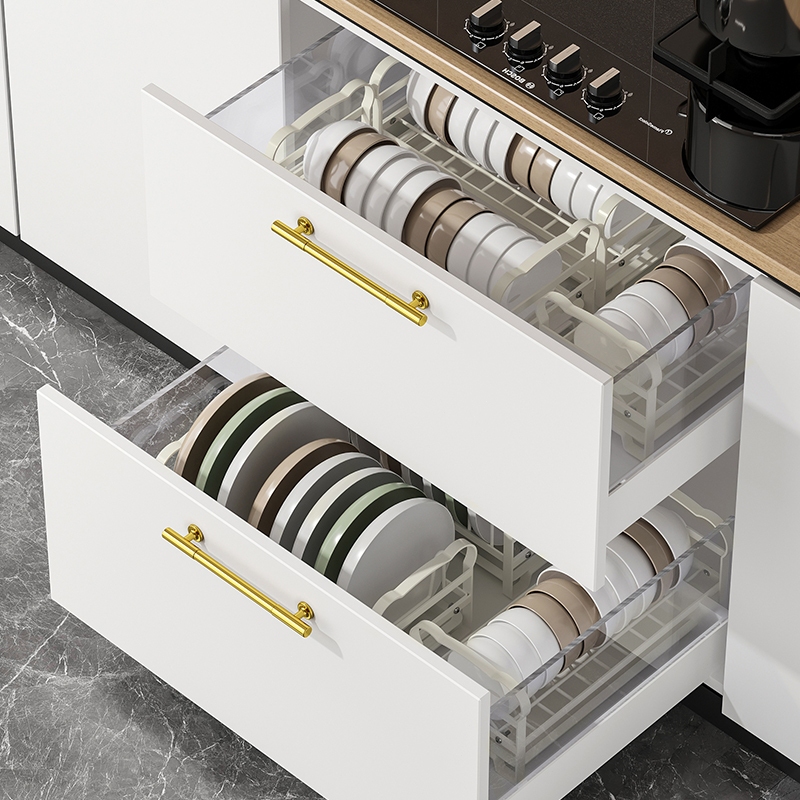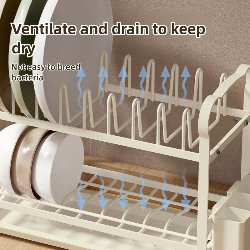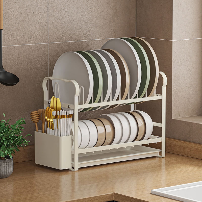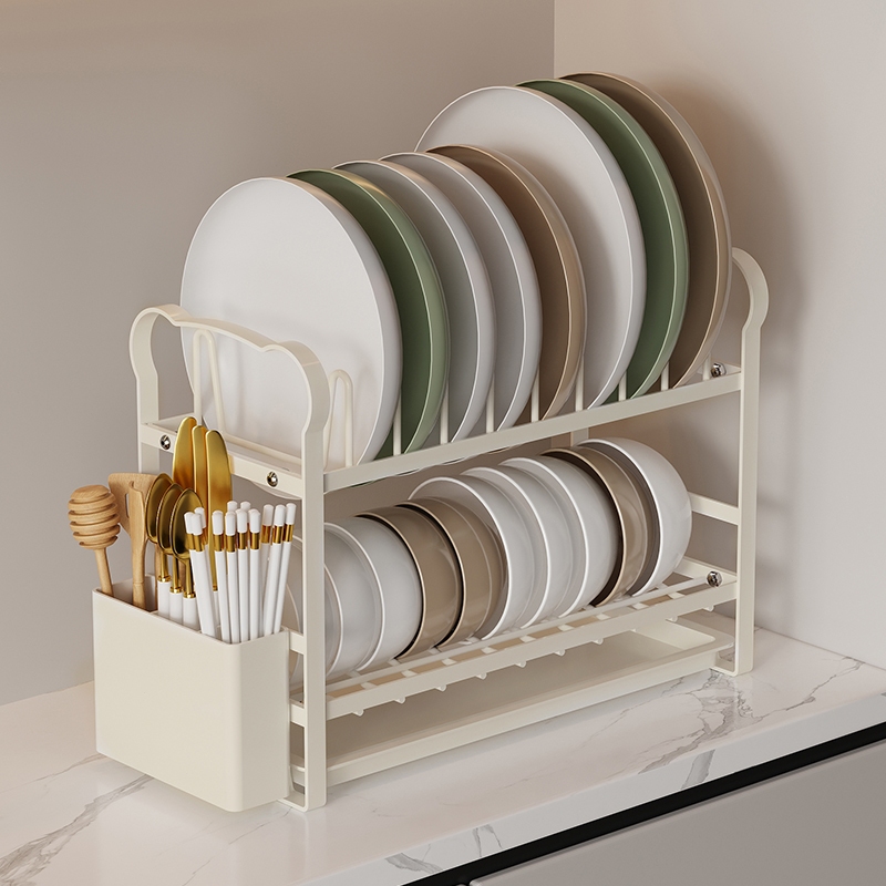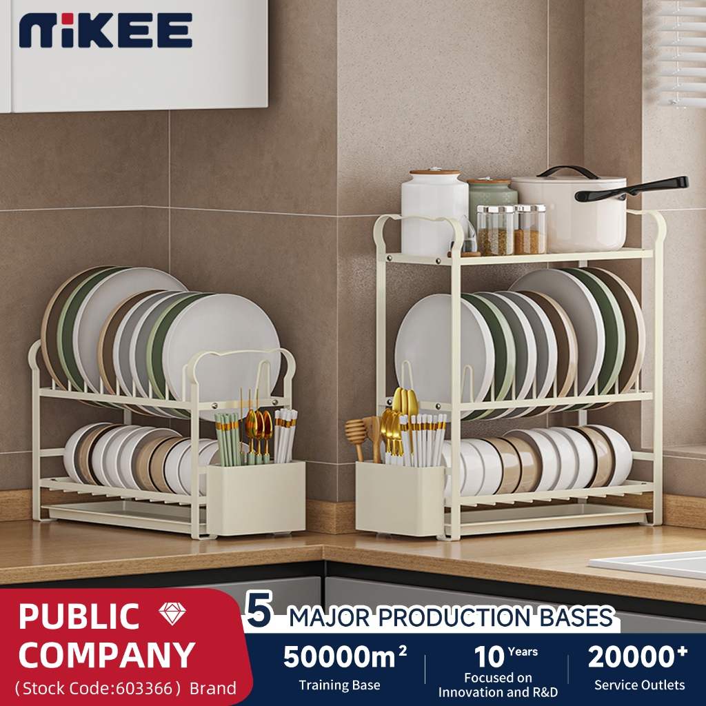 MIKEE Rak Dapur Rak Asfalt Piring Multifungsi Rak Mangkuk Stainless Steel Lemari Mangkuk Desktop Rumah Penyimpan Pisau Tongkat