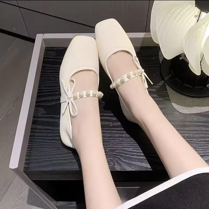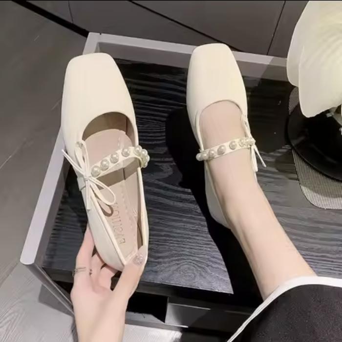 [Star]SEPATU FLAT SHOES BALET WANITA TALI MUTIARA THALIA - Cream, 37