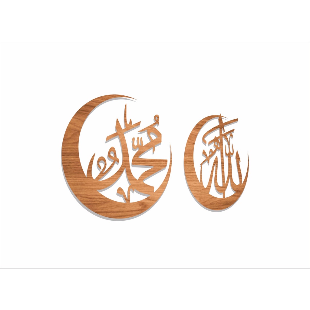 (1Set 2) Hiasan Dinding Kayu Laser Cut Lafadz ALLAH - MUHAMMAD