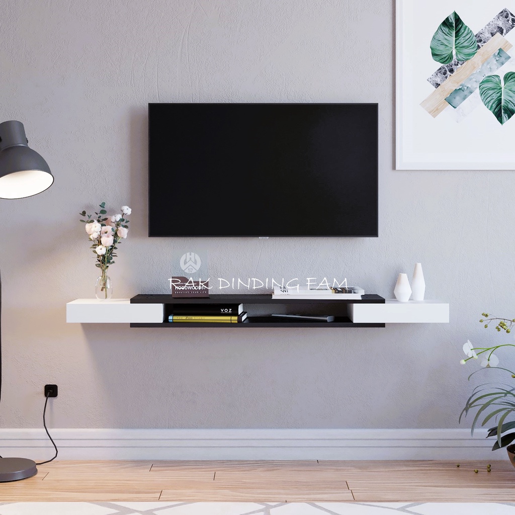 Rak Meja TV Dinding Minimalis Kayu Gantung Dekorasi Rumah 006