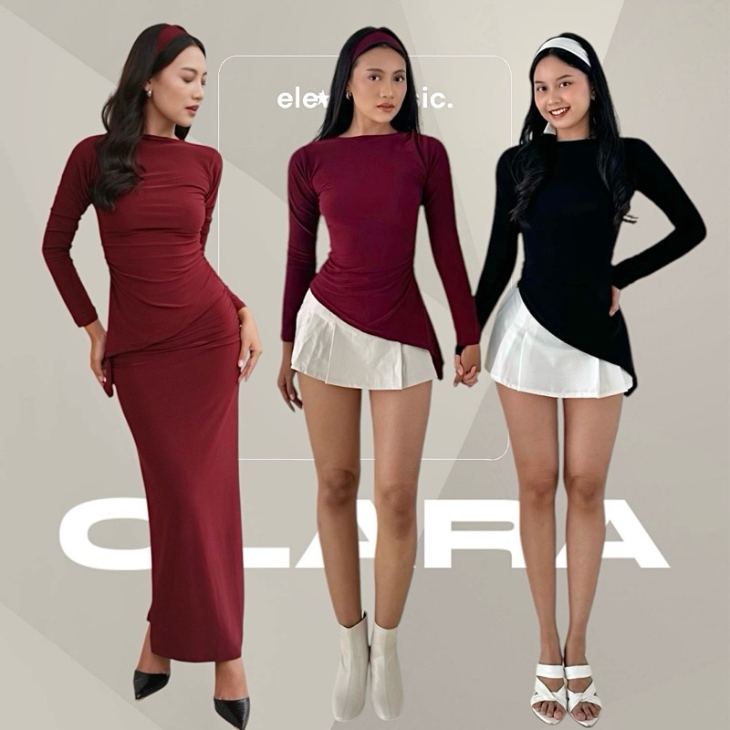 CLARA SET | SETELAN WANITA LENGAN PANJANG | Nyaman Putih Top Hitam Formal Panjang Santai Atasan Casual Remaja Simple | ONE SET LONG SLEEVE