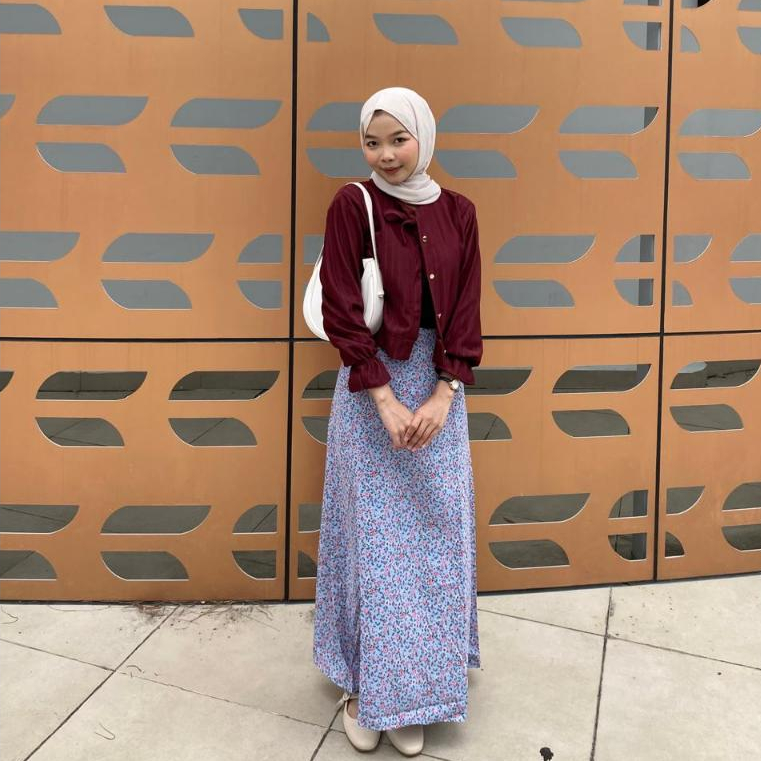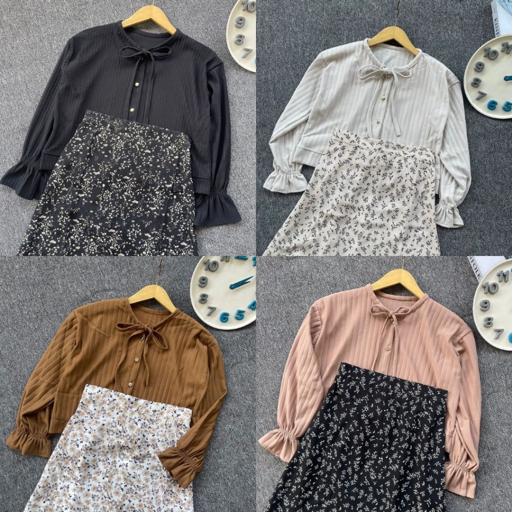Grosir_Solo || Setelan One Set 2in1 Rok Floral Korean Skirt Motif Bunga + Cardigan Alia Crop Hornet