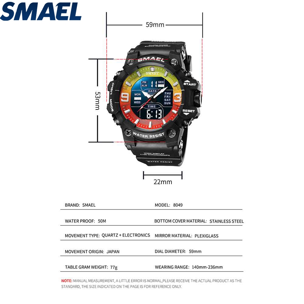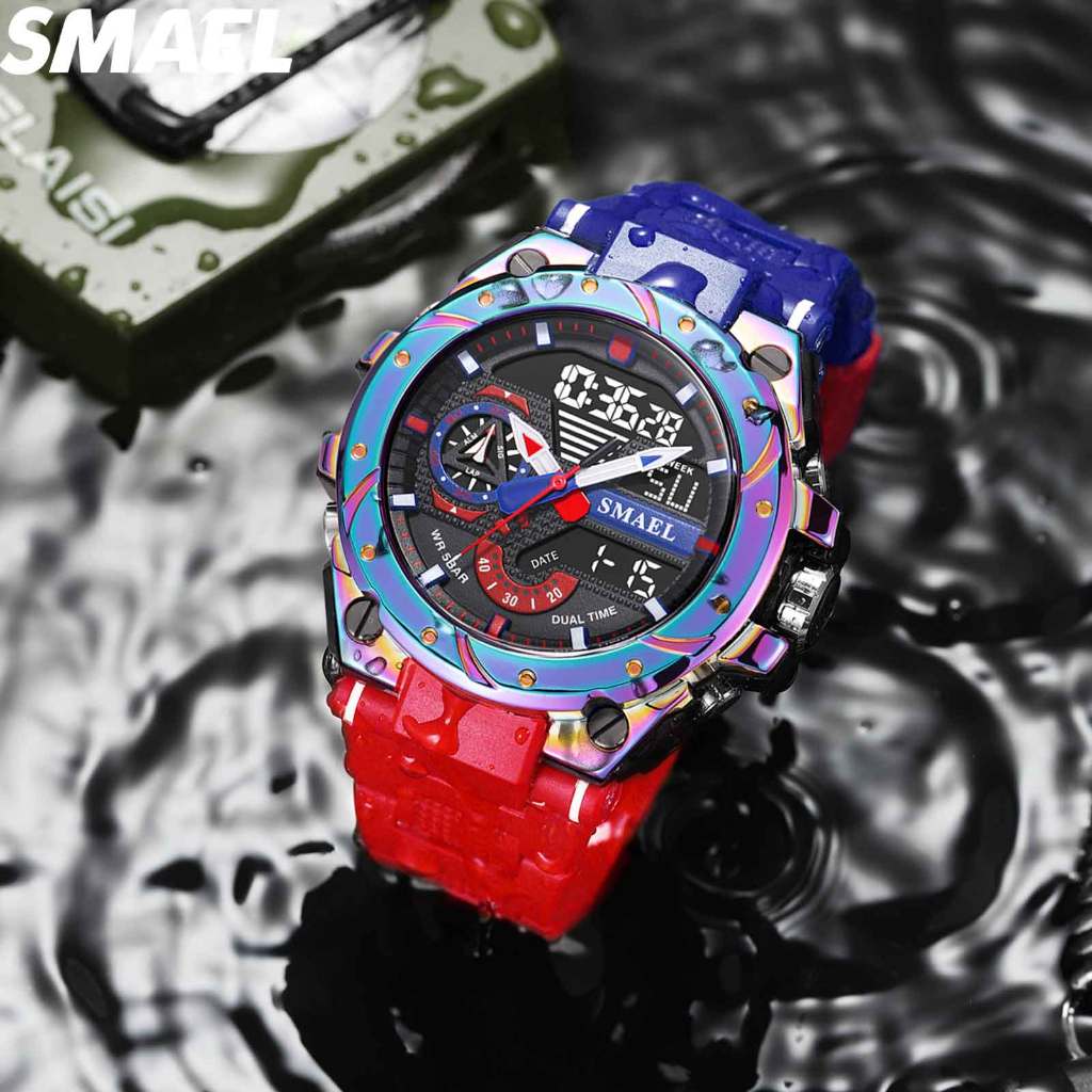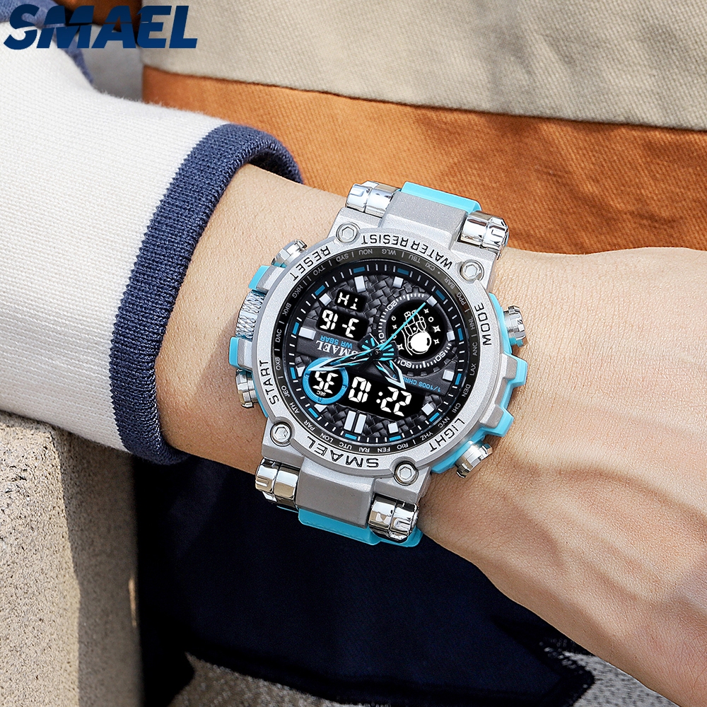 Jam Tangan Olahraga SMAEL 8093 dengan Layar Ganda, Digital, Berbahan Alloy, Anti Air, Multifungsi