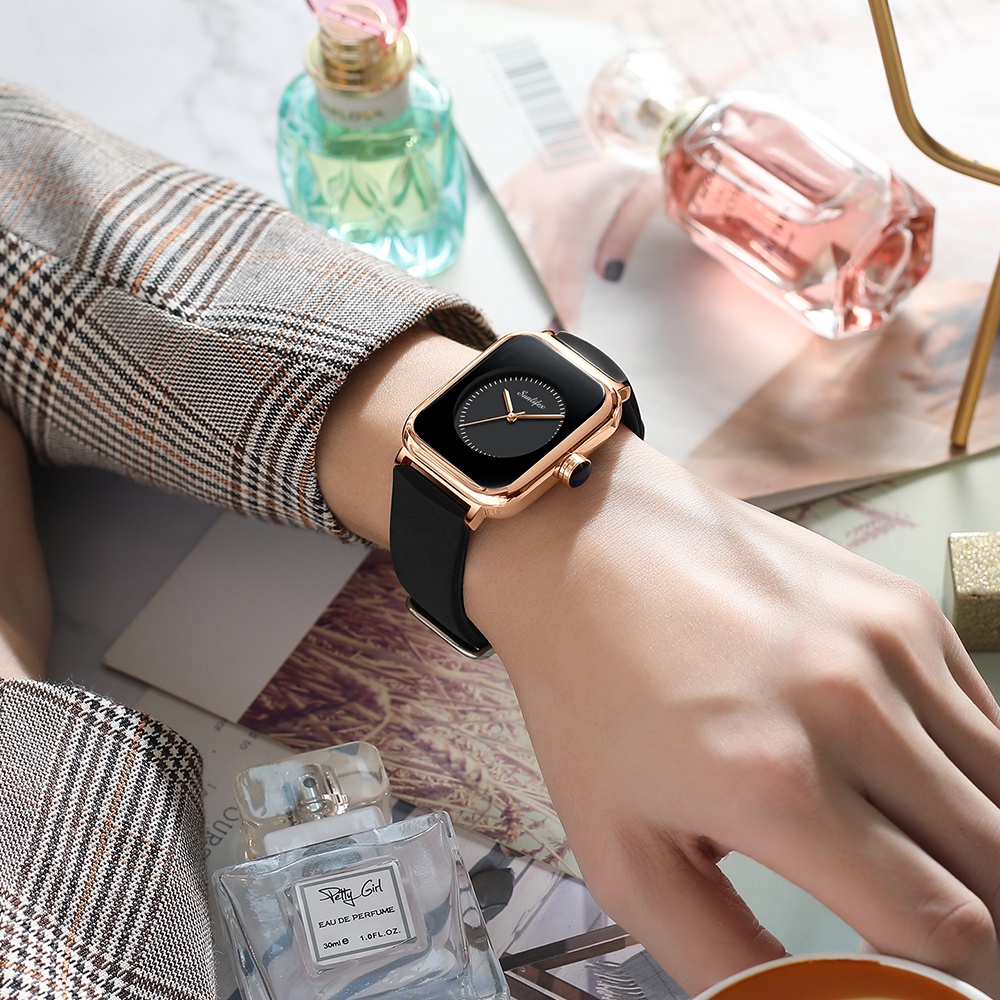 SUNLIFEX Jam Tangan Wanita Original Square Simple Dial Display Jam Tangan Cewek Anti Air Mode Korea Tali Silikon Kuarsa