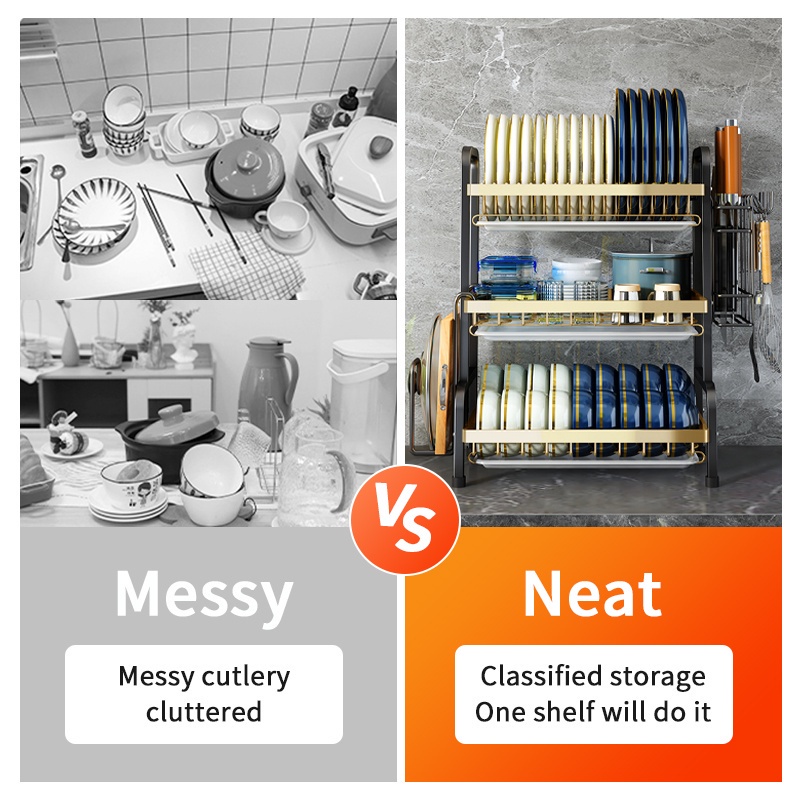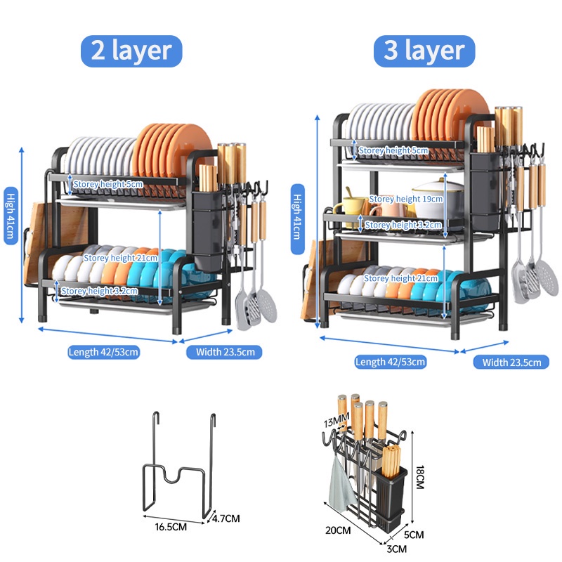 HOMIX Rak Piring Wastafel Stainless Rak Dapur Piring Dengan Aksesoris 2 Susun Tingkat Peralatan