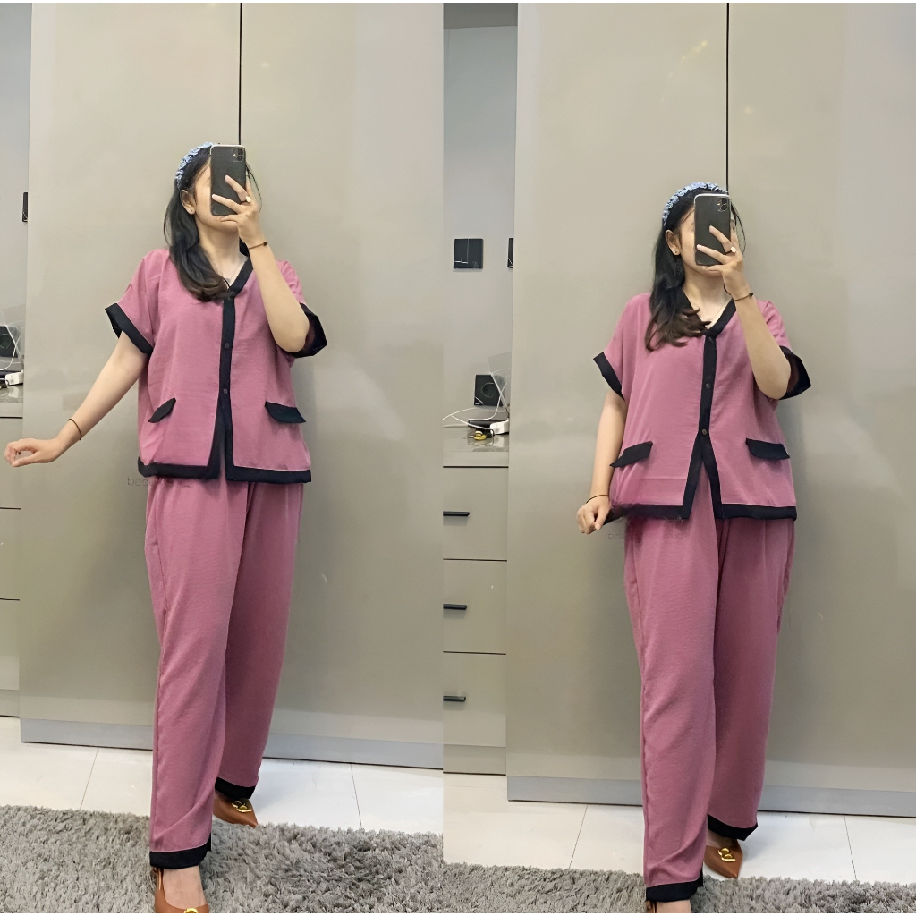 Lozy One Set Setelan Wanita Kekinian Baju Santai Tangan Pendek Bestseller Daily Ootd
