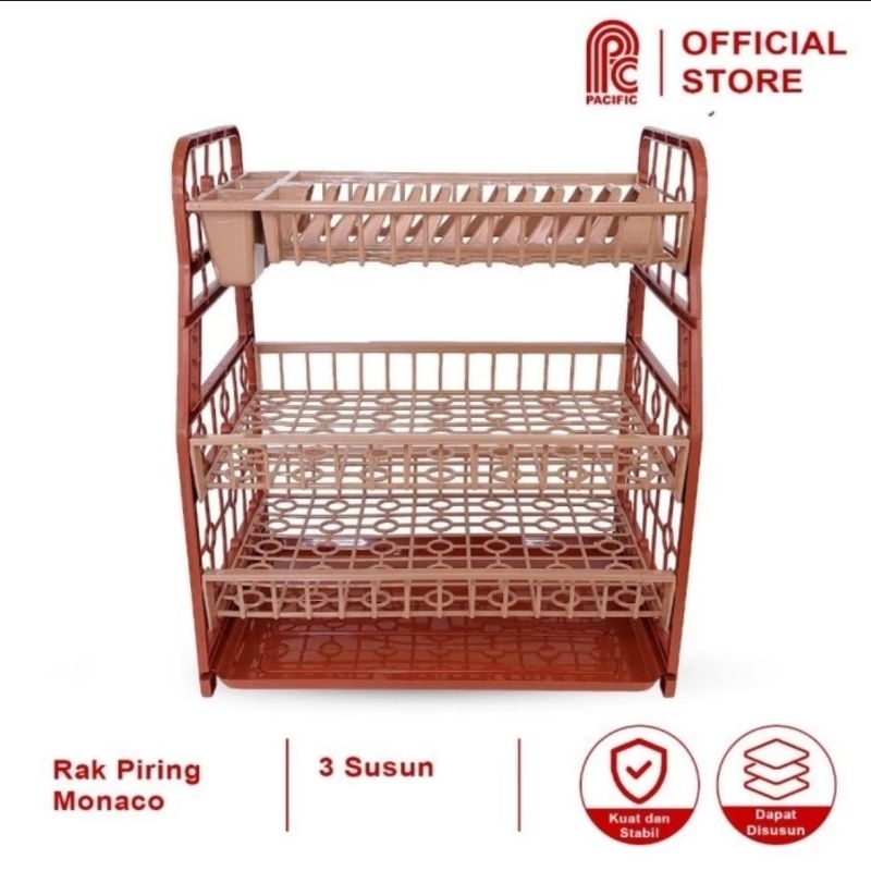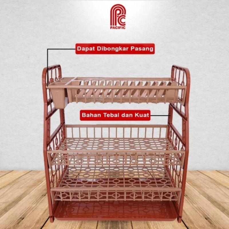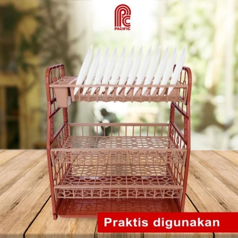 PACIFIC Rak Piring Plastik 3 Susun Monaco Dish Rack Dengan Nampan