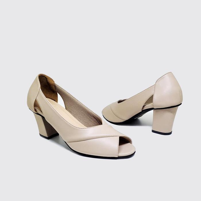 [Star]A.E.M Sepatu Pantofel Heels Formal Wanita Big Size 40-45 Jumbo Besar - Beige, 40