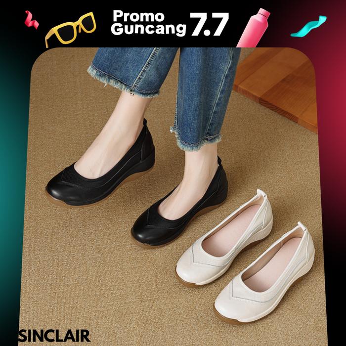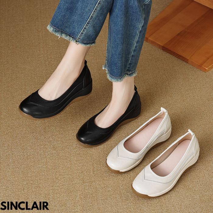 [Star]FINDME 36-40 Sepatu Wanita Model Wedges Cantik Polos Classic Bahan Pu Berkualitas Sinclair - Black, 39