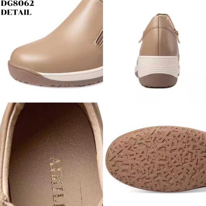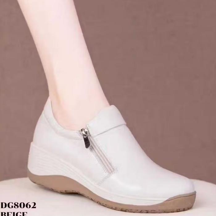 [Star]DG8062 BEIGE Sepatu Sneaker Wedges Wanita Simple Zipper Terbaru Coklat Casual Shoes Bahan Sintetis Nyaman & Tahan