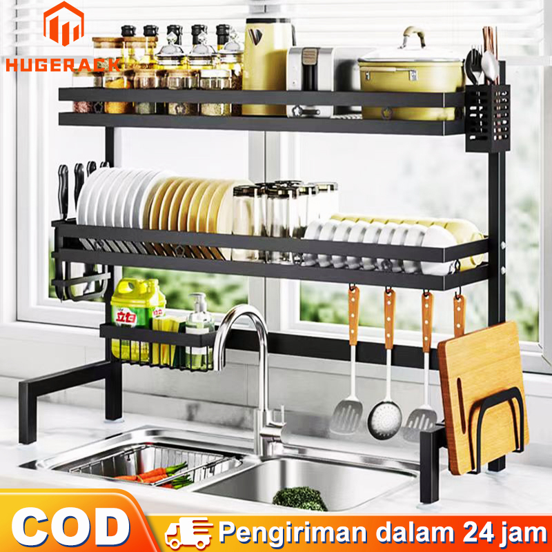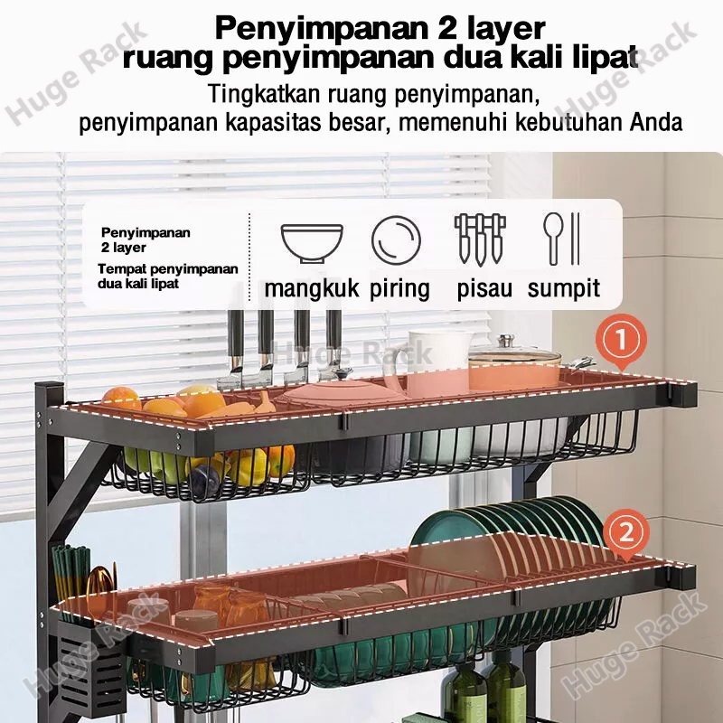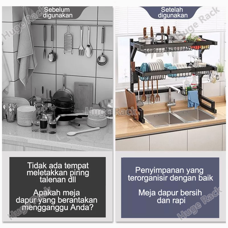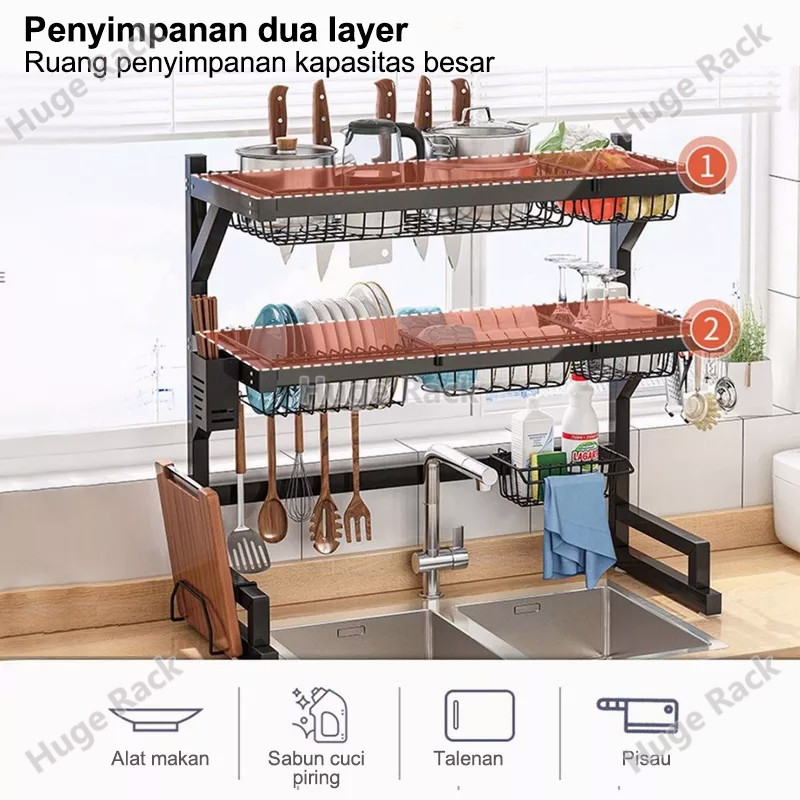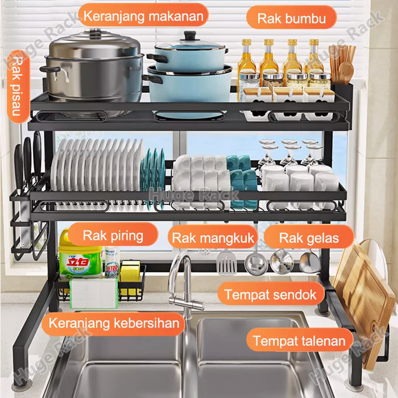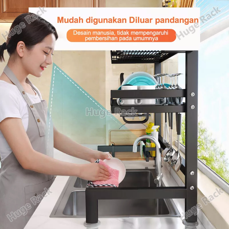 Rak Piring Wastafel Stainless steel Rak Wastafel Dapur Rak Cuci Piring Multifungsi Rak Dapur Dengan Aksesoris
