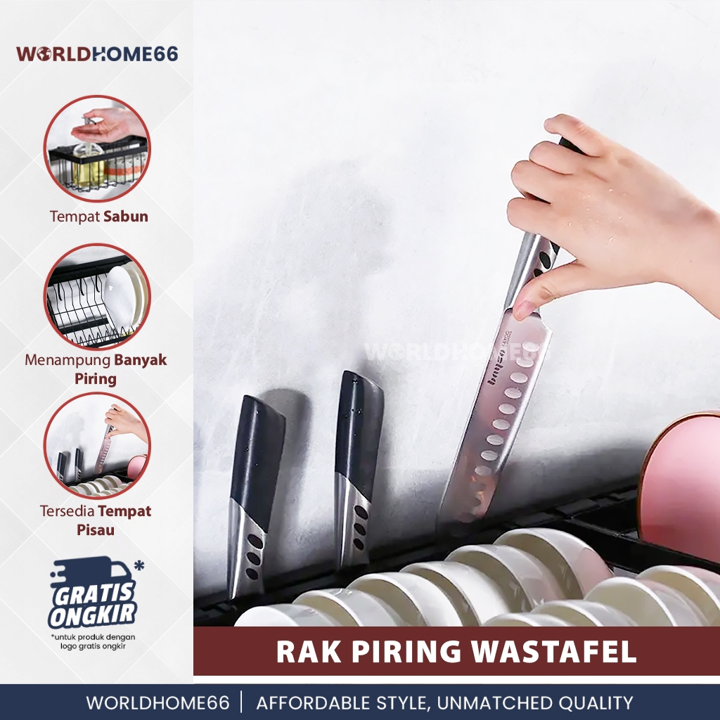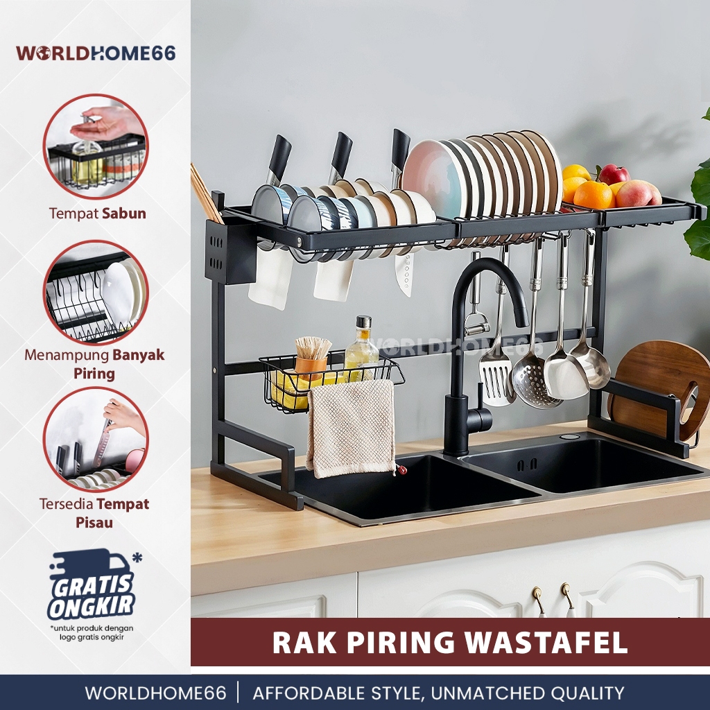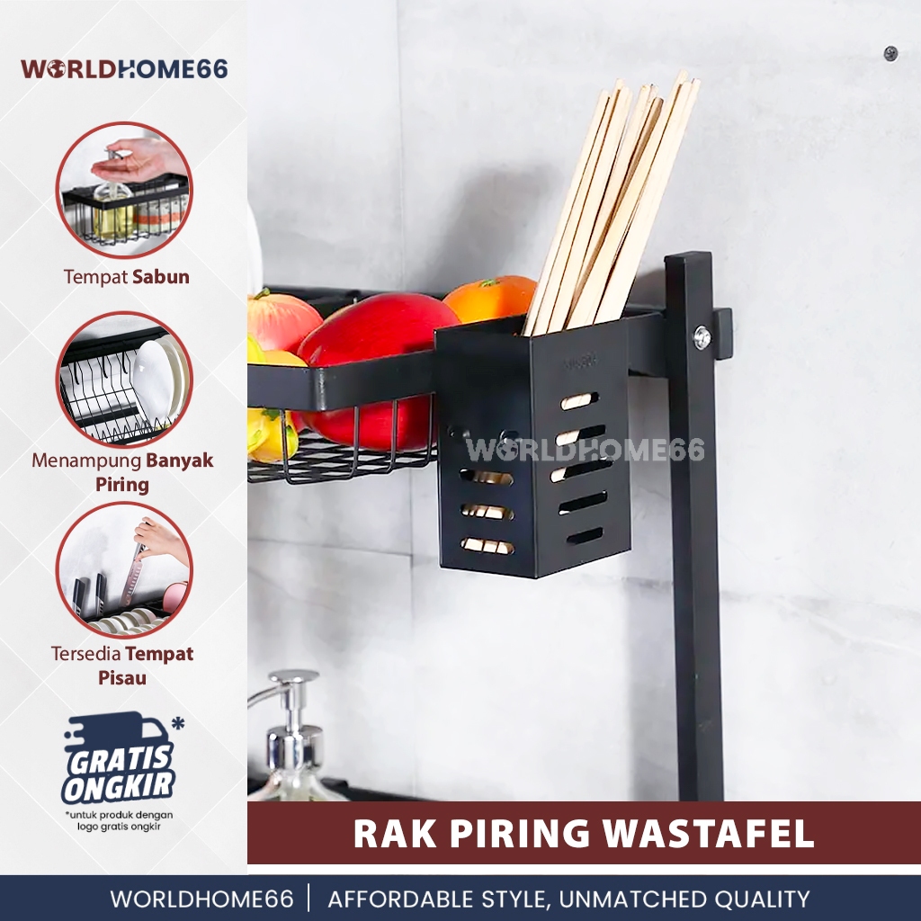 Worldhome Rak Piring Wastafel Rak Cucian Piring Wastafel Stainless Steel Cat Coating Anti Karat