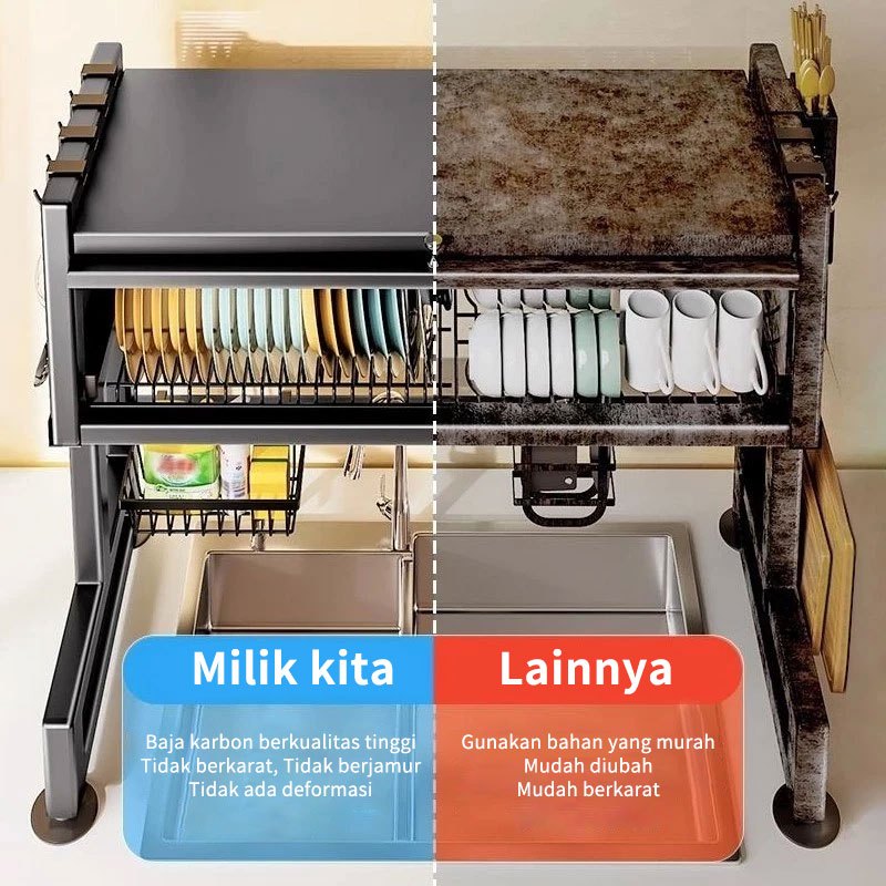 Rak Piring Wastafel Stainless Steel Lemari Rak Piring Tertutup Rak Dapur Multifungsi