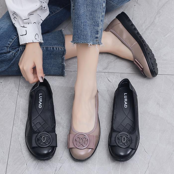 [Star]LURAD Sepatu Slip On Wanita Sepatu Kerja Cewek Bahan Kulit Empuk 1865 - Beige, 36