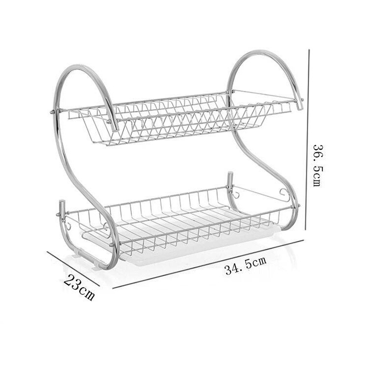 Rak Piring Minimalis / Rak Piring Stainless 2 Tingkat Perlengkapan Dapur Ukuran 35 x 24 x 38 Cm