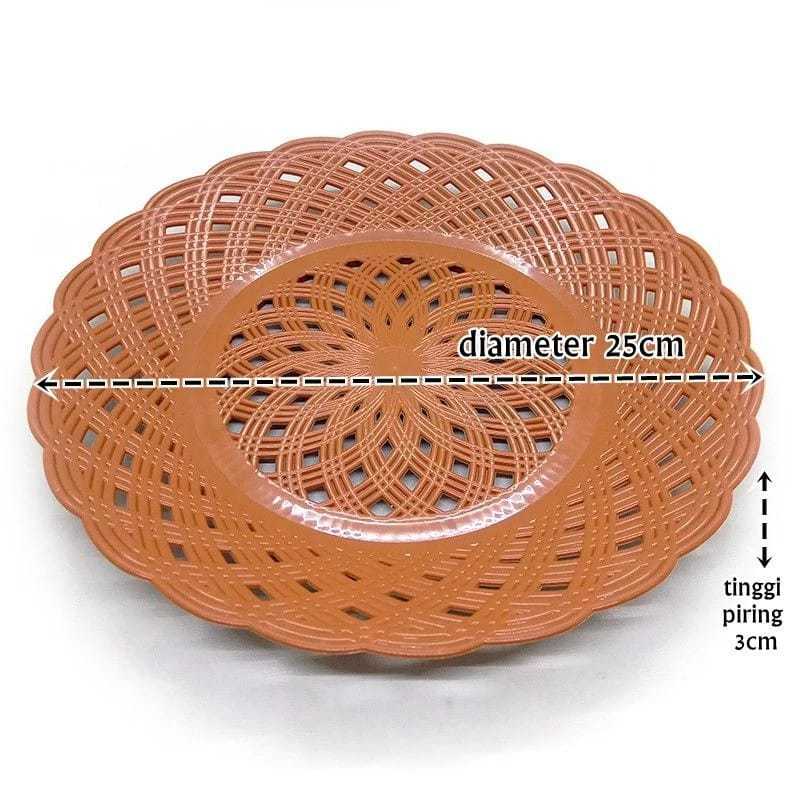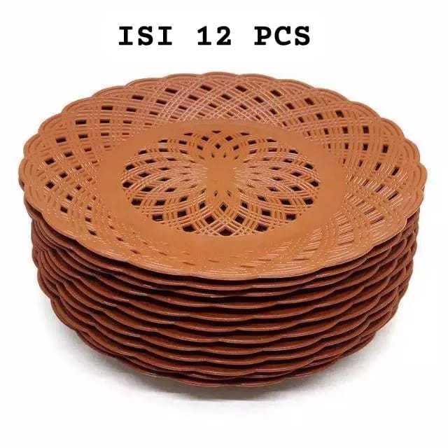 1 Lusin Piring Makan Plastik Anyam Coklat 12 Pcs