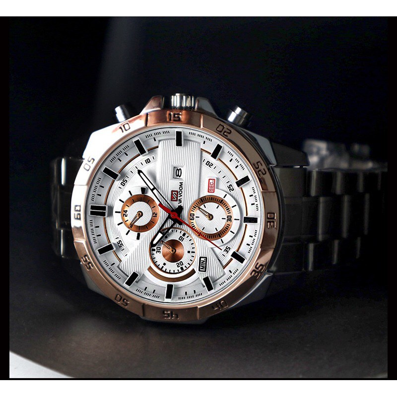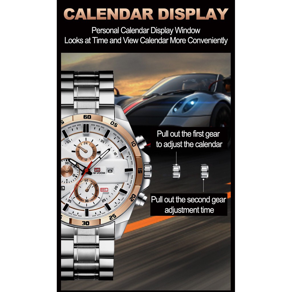 VAVA VOOM Jam tangan Pria Anti Air Stainless Steel kalender Original Arloji Cowok Fashion Men Watch
