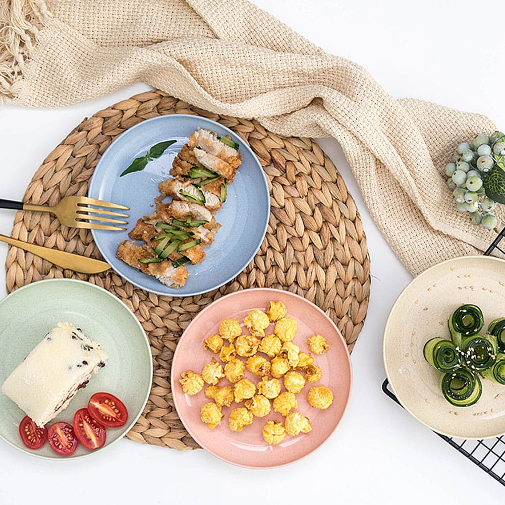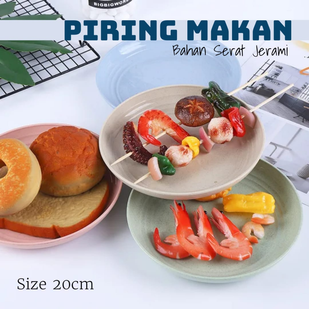 Az Piring Makan Bulat Bahan Jerami Gandum Tebal Wheat Straw Plate Warna Warni