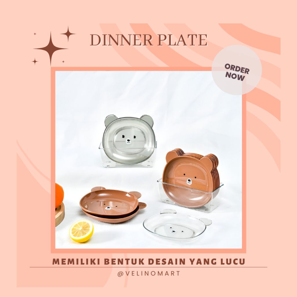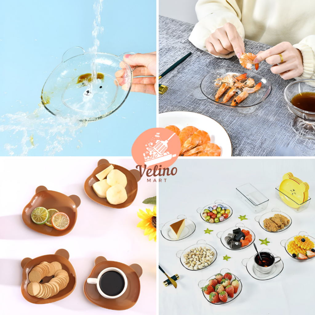 Piring Makan Anak Lucu / Piring Makan Plastik / Piring Bentuk Beruang / Piring Disert Serbaguna
