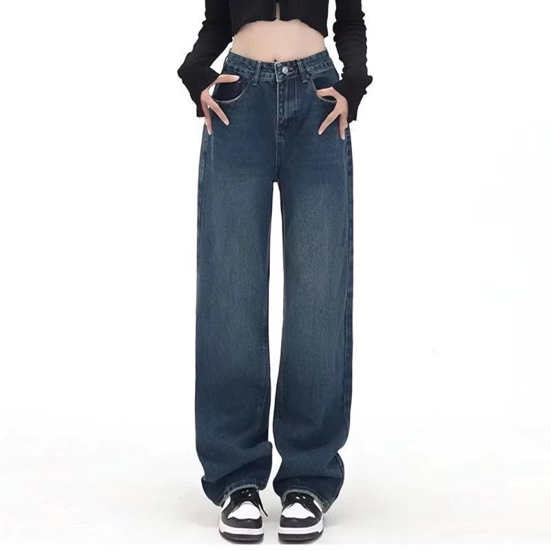 Highwaist Loose jeans |celana kulot jeans wanita |korean baggy straigh jeans