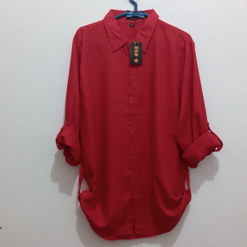 Kemeja Rayon Merah Cabe Kemeja Wanita Bahan Rayon Adem Lembut Jatoh Kemeja Polos Wanita Merah Atasan Wanita Basic Ukuran M L XL XXL XXXL