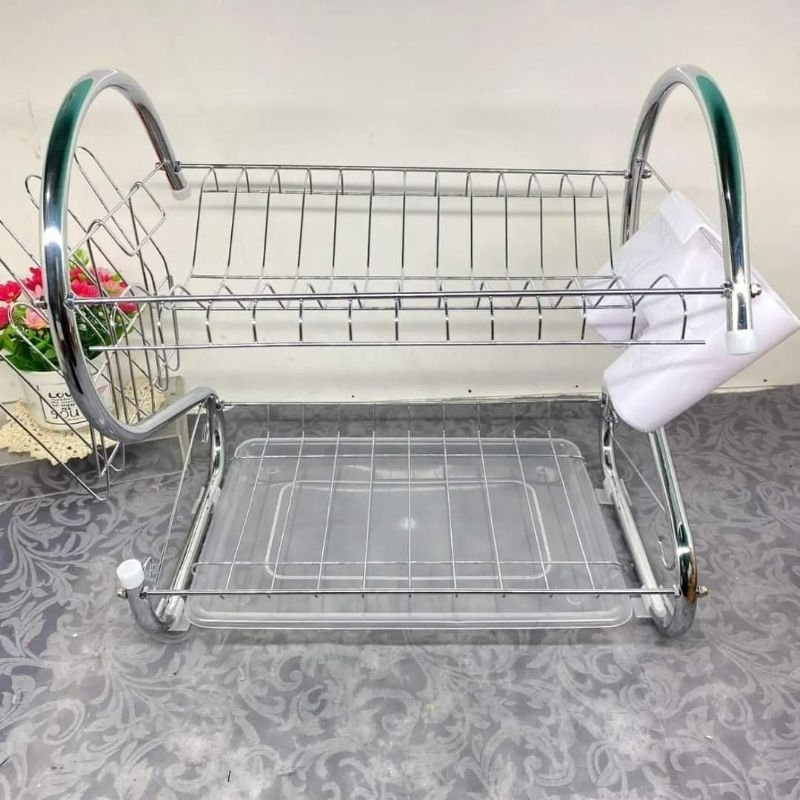 SHENAR real pict (2KG) RAK CUCI PIRING STAINLESS 2 TINGKAT/RAK PIRING TADAH AIR NAMPAN - RAK TEMPAT PIRING SENDOK DAN GELAS/RAK PIRING Stainless Minimalis 2 Susun Tingkat
