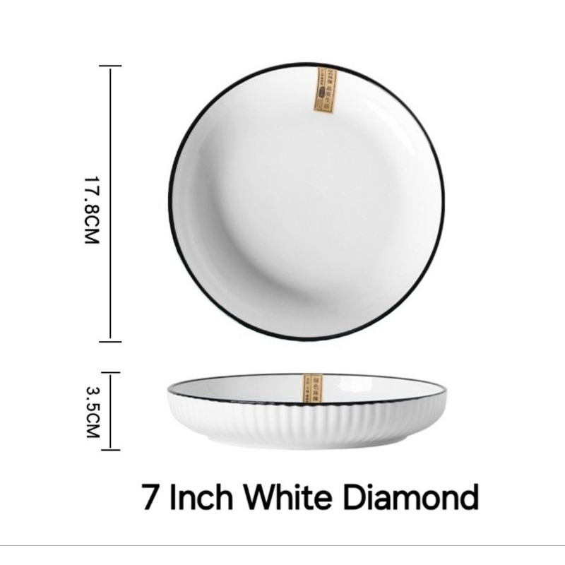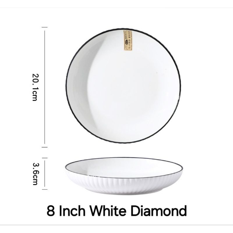 Piring Porcelain White Diamond Elegant Plate 7 & 8 Inch Ukuran 18 Dan 20 Cm