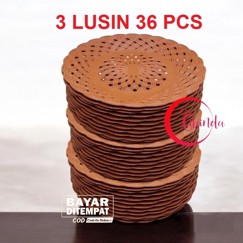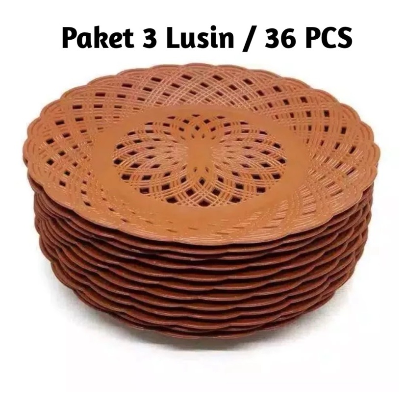 36 PCS / 3 Lusin Piring Rotan Plastik Tebal / Piring Anyaman Plastik