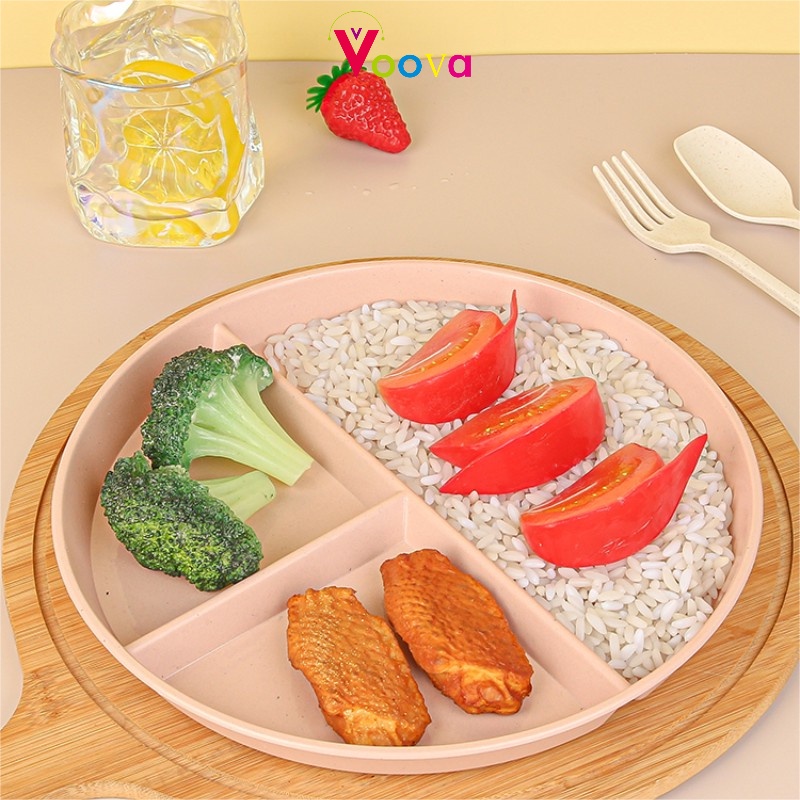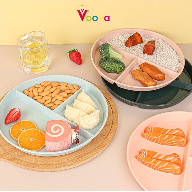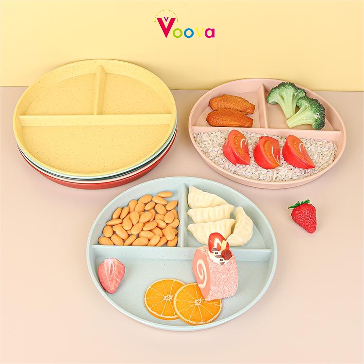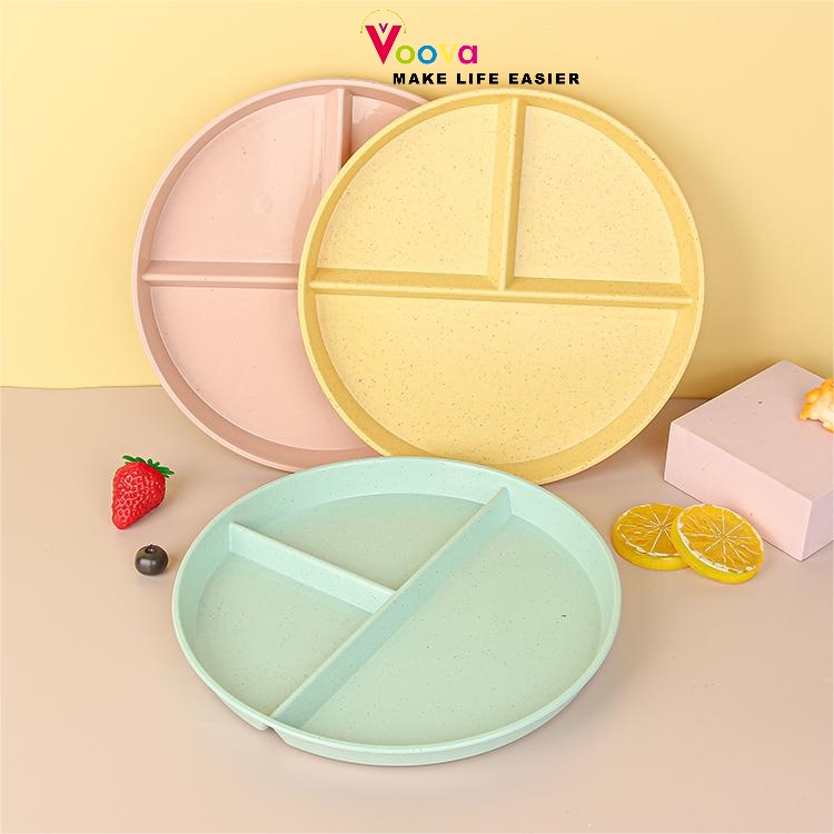 VOOVA Piring Makanan Yang Mengurangi Lemak/Piring Sekat/Piring Bundar Tiga Kotak/Peralatan Makan Satu Orang