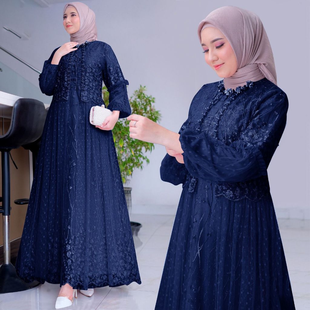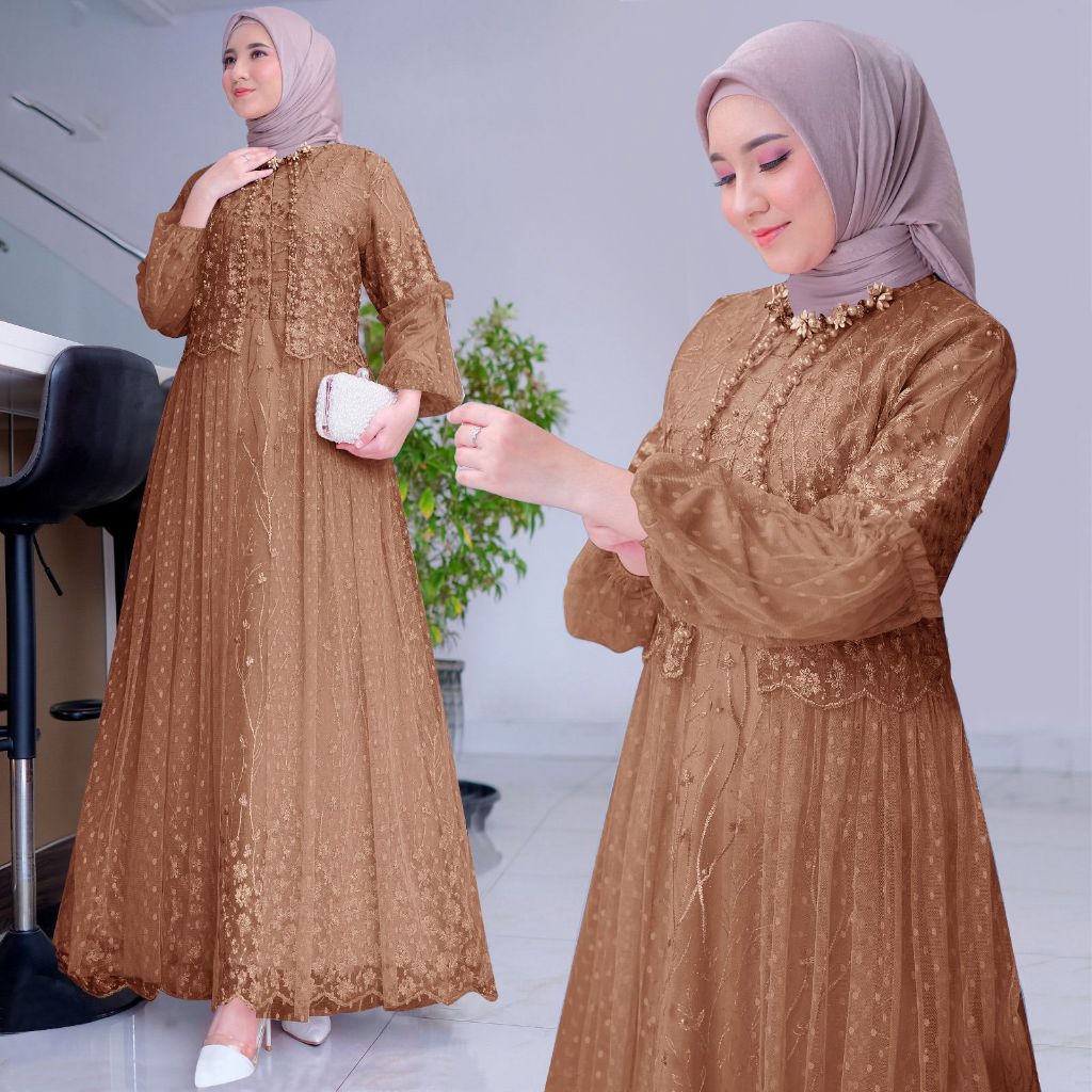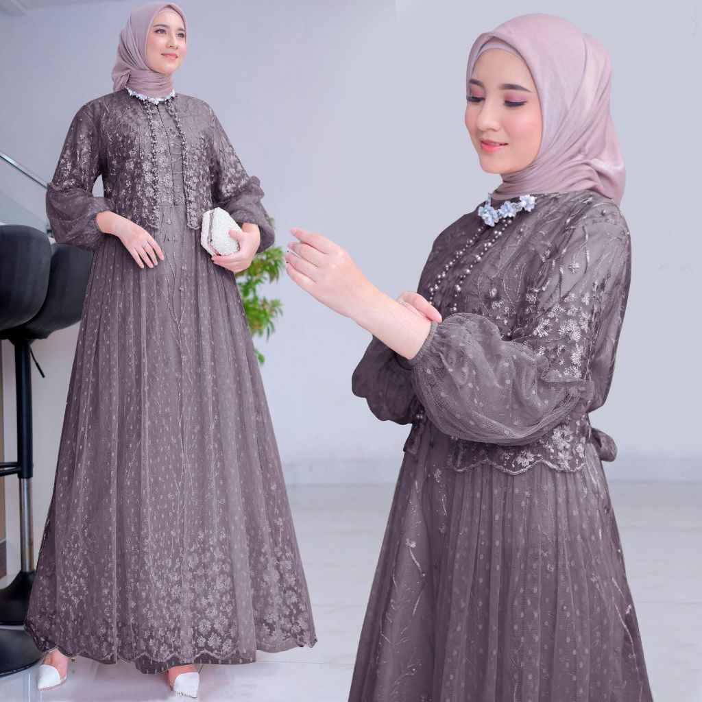 GnC Gamis Dress RfK cc8 Abaya Terbaru 2025 Lebaran Wanita Pakaian Muslim Arab Saudi Bordered Brukat