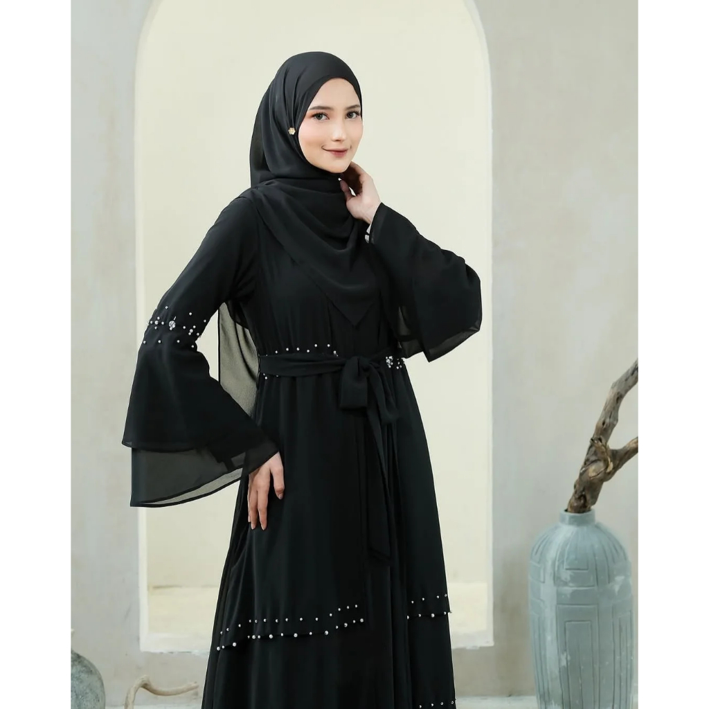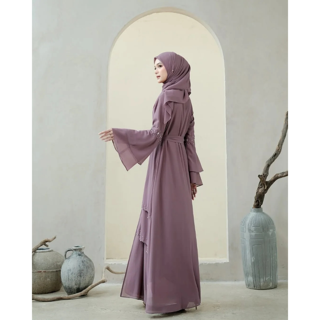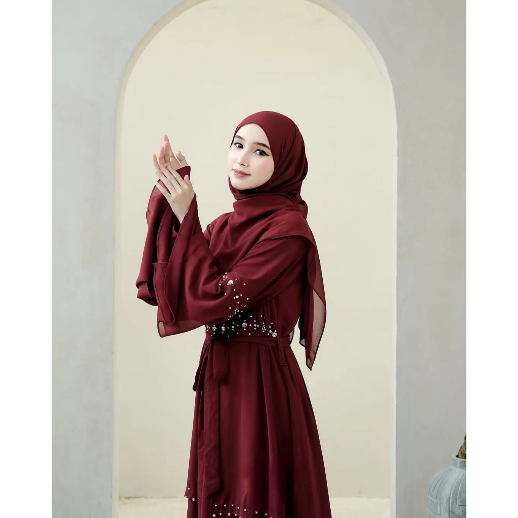Gamis Burgundy Baju Lebaran 2025 Terbaru Dress Muslim Kekinian Abaya Hitam Payet Mewah Free Belt