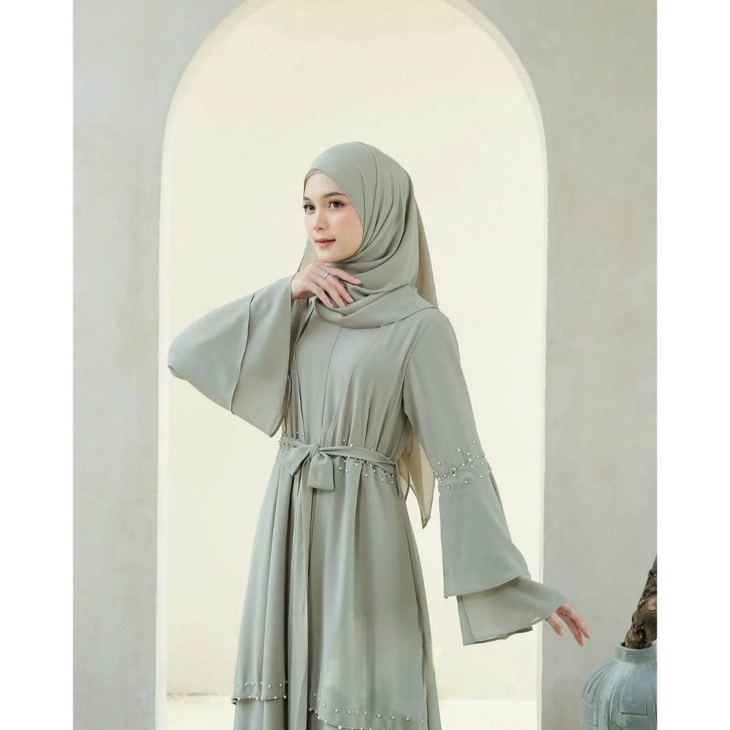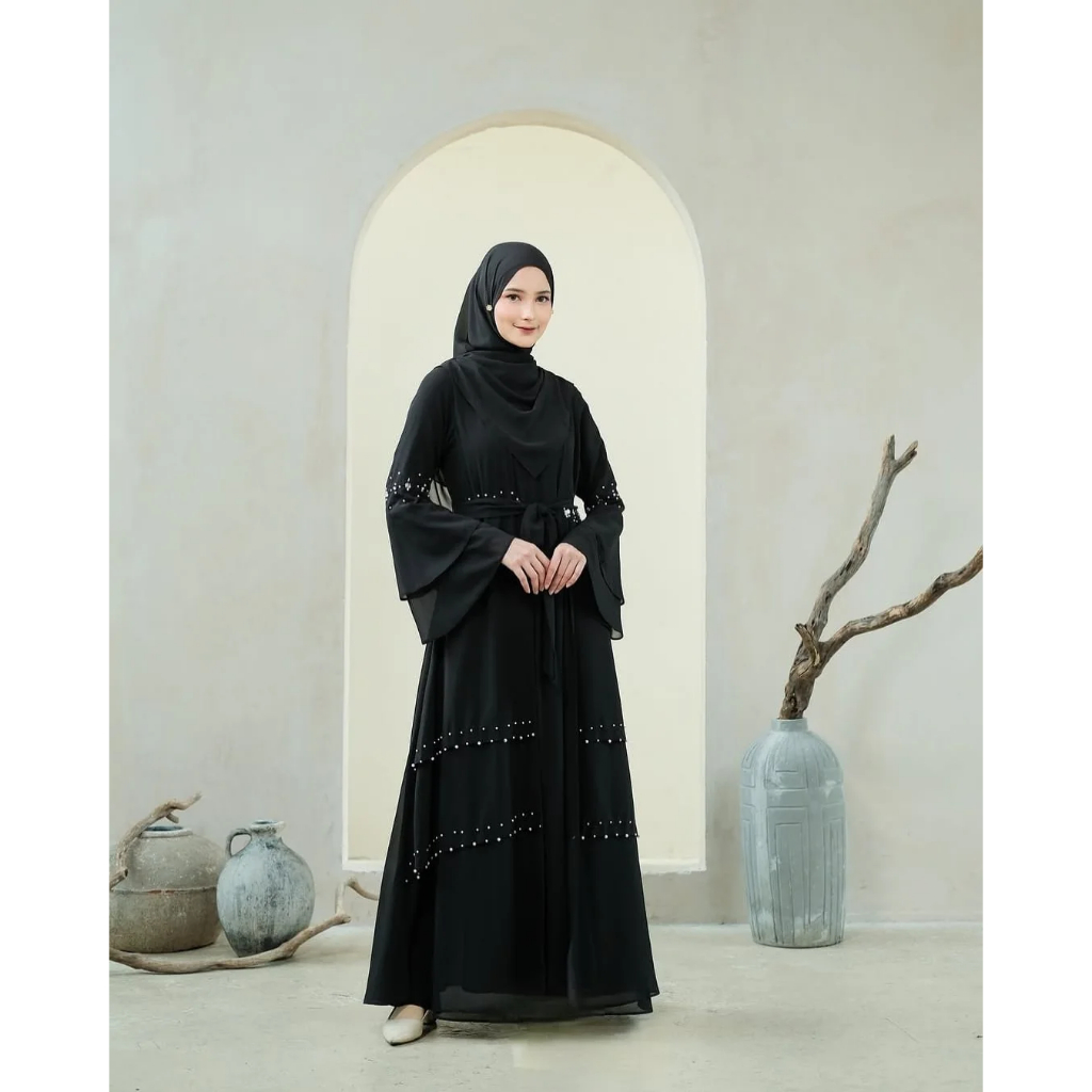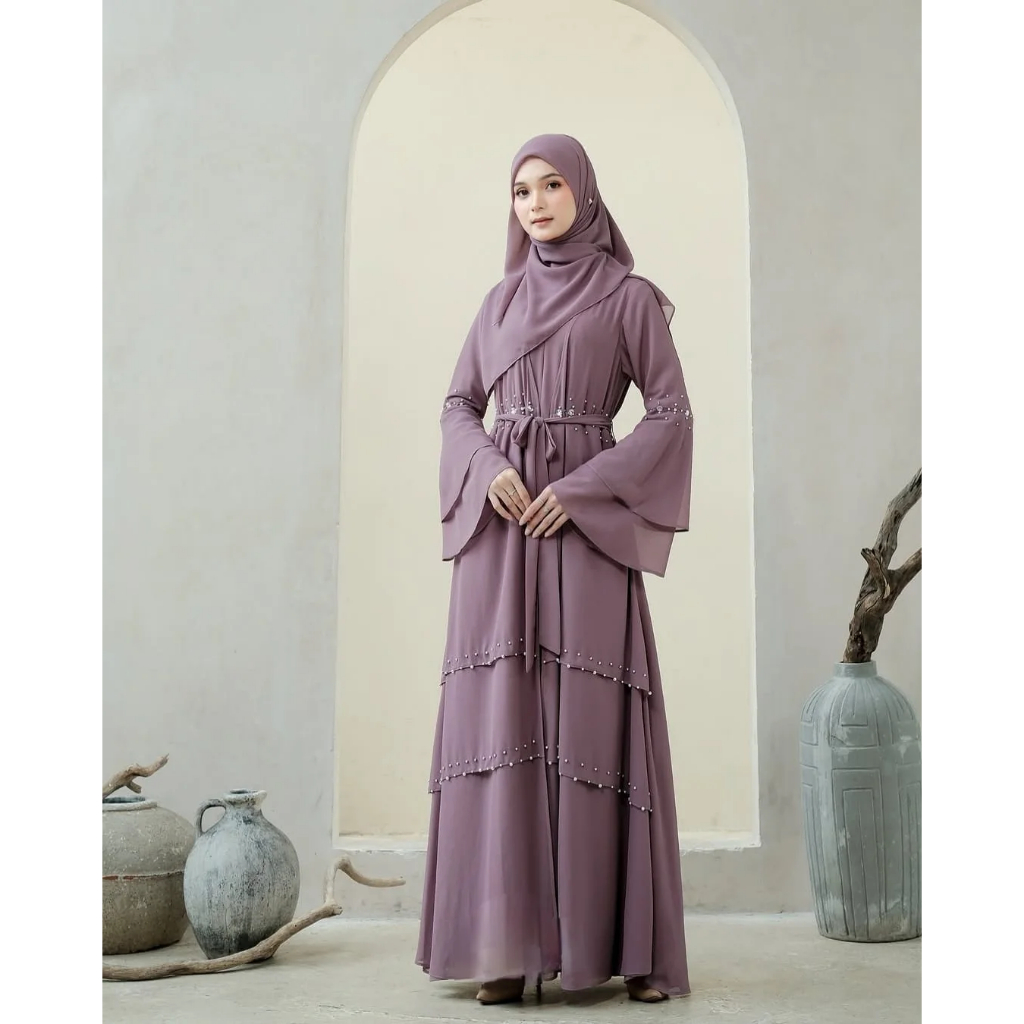 Gamis Burgundy Baju Lebaran 2025 Terbaru Dress Muslim Kekinian Abaya Hitam Payet Mewah Free Belt