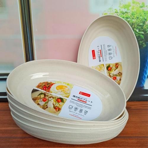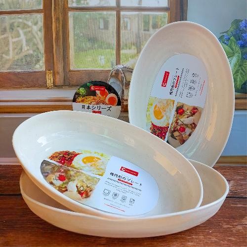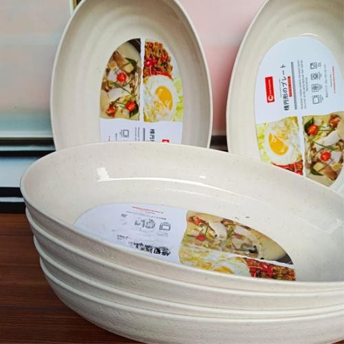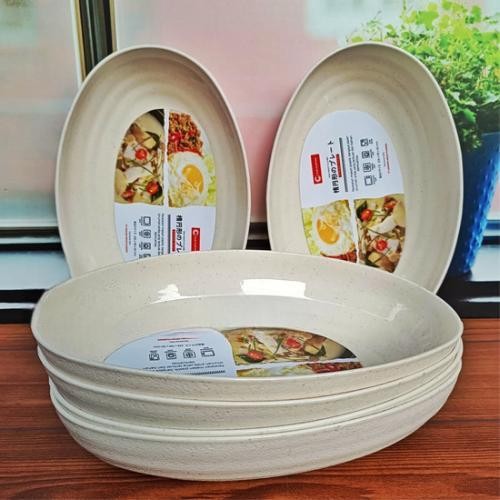 Paket 12 Pcs Piring Ramen Saji Lonjong Oval 8 Inch Piring Sayur Ulir Tebal Tahan Panas Food Grade Putih Plastik Dapur Kitchenware