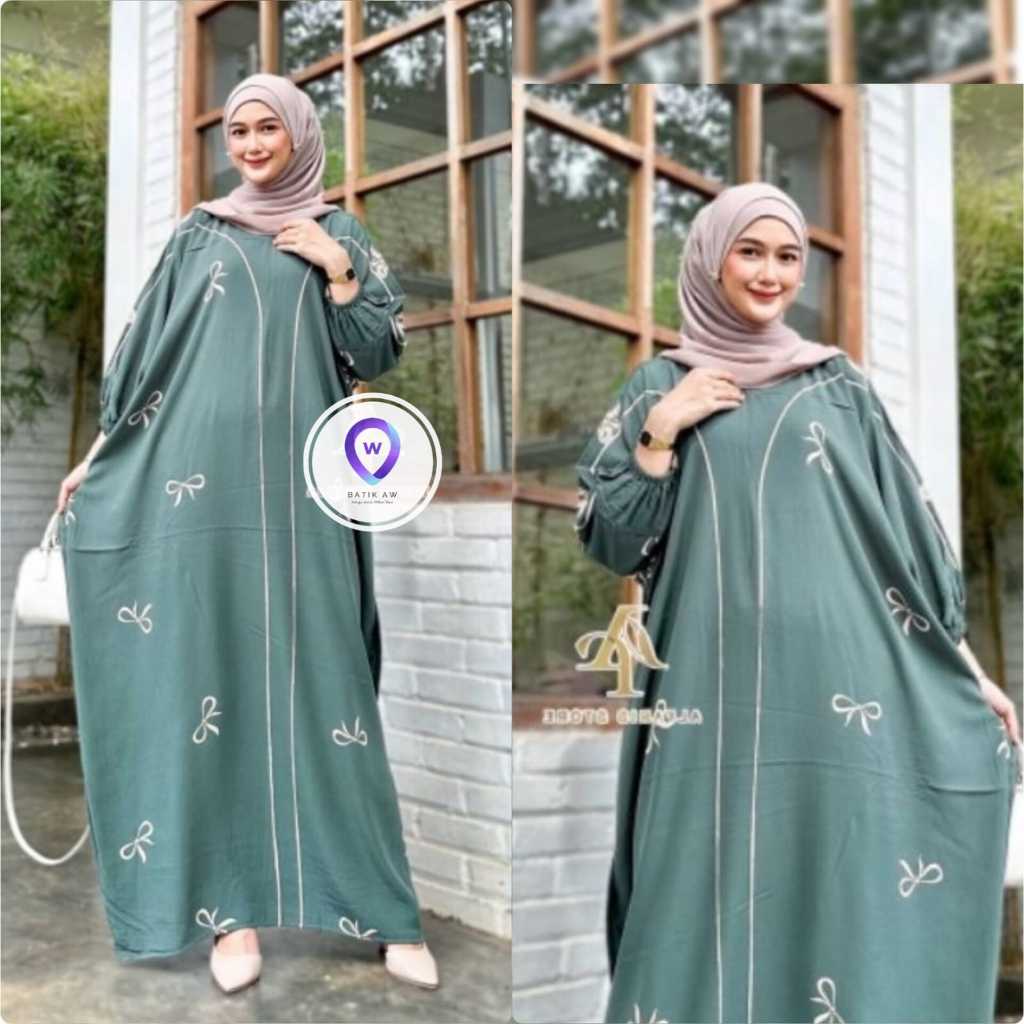 Kaftan Pitaloka by Daster Qu Abaya Kaftan Lebaran 2025 Jumbo Motif Batik Pita Simple Mewah Elegan