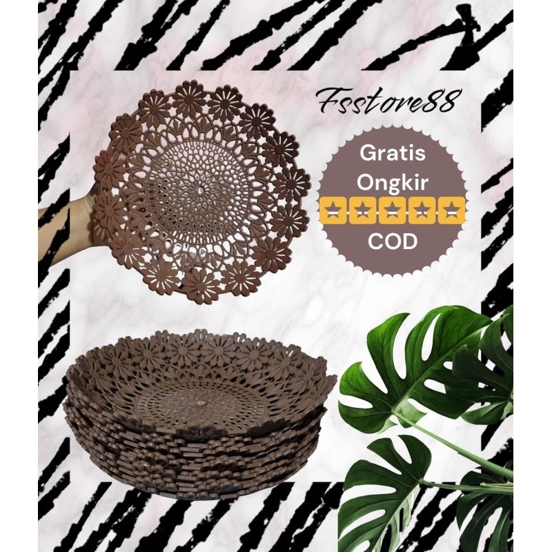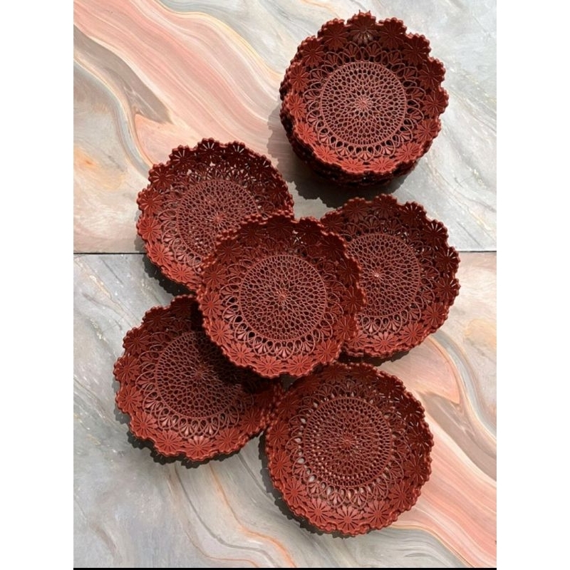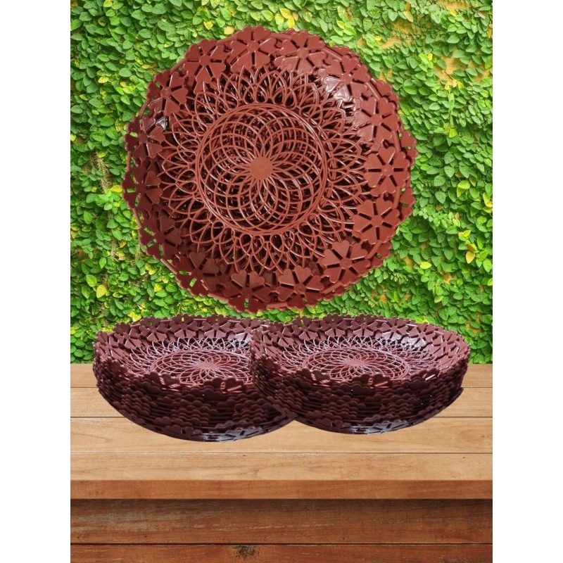 Piring Rotan Bunga Bulat Tebel Isi 12 Pcs Coklat