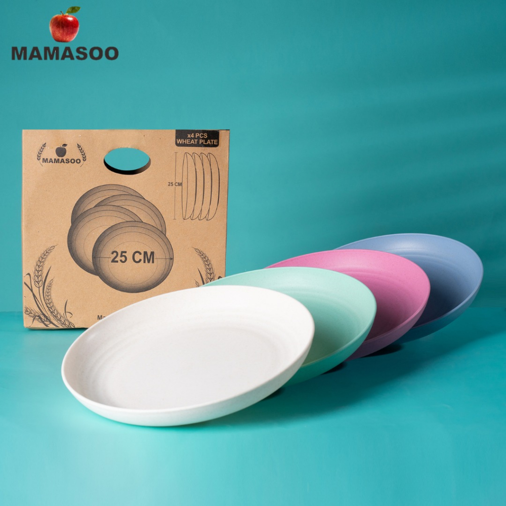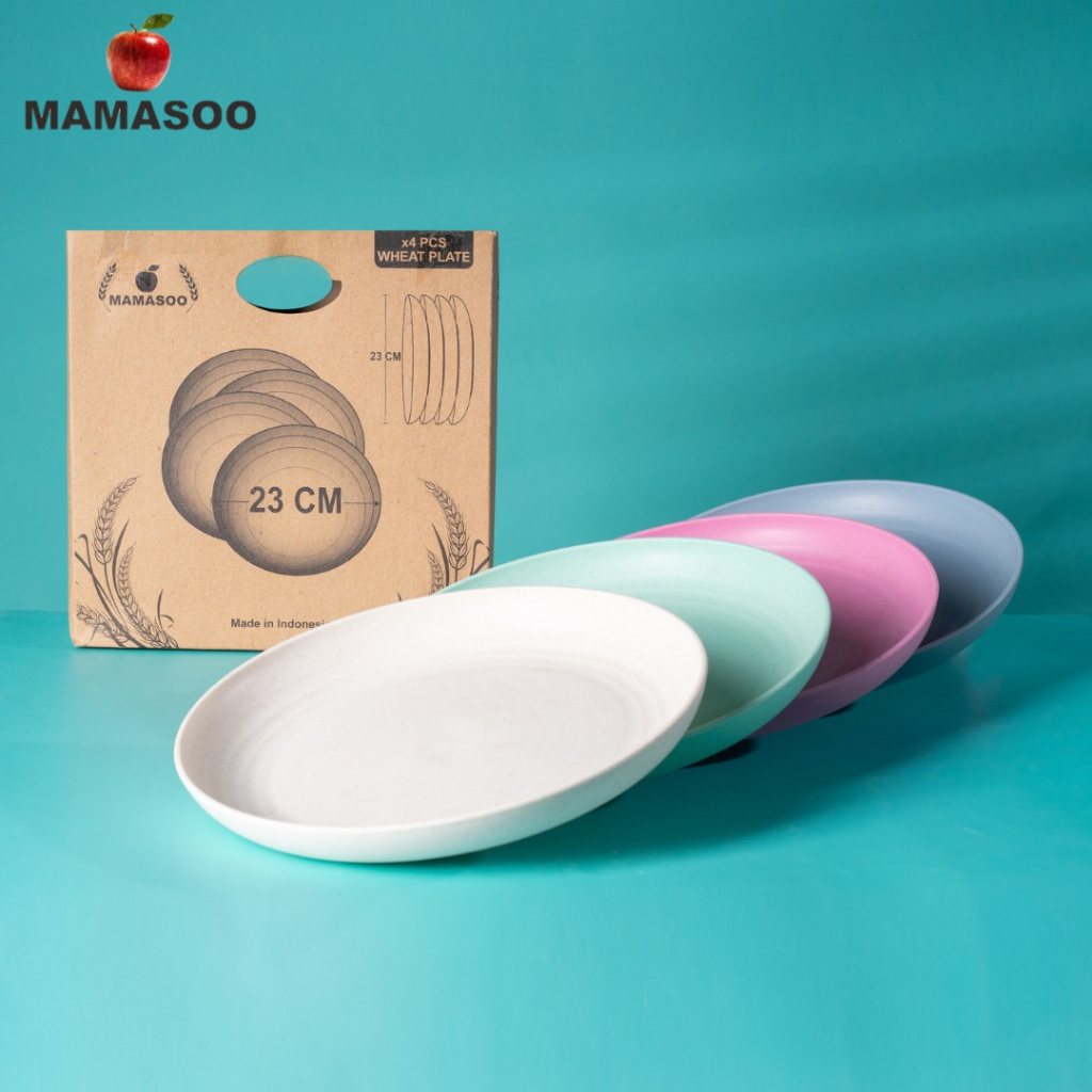 MAMASOO Piring Makan Saji Bahan Wheat Straw Ukuran 23 & 25 Cm Round Plate Ramah Lingkungan