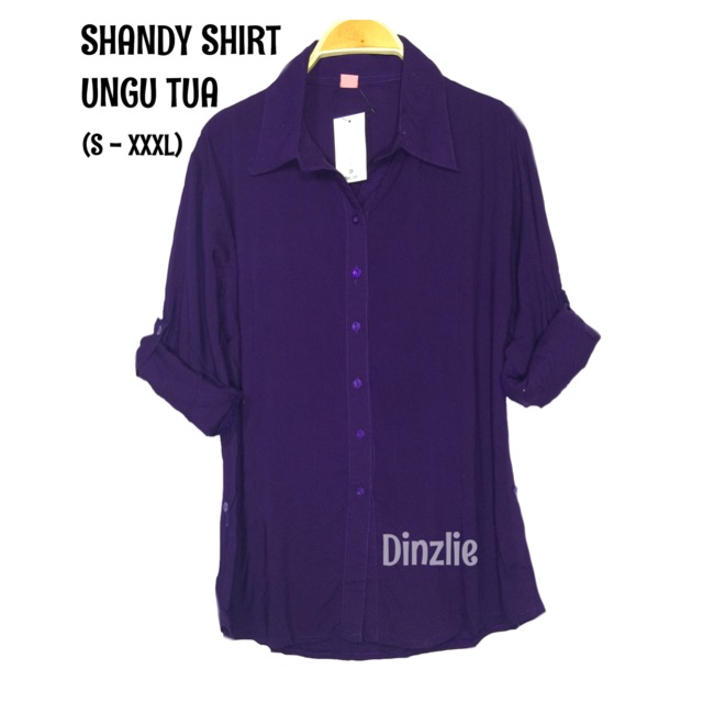 Kemeja Wanita Polos Bahan Rayon Warna Ungu Tua