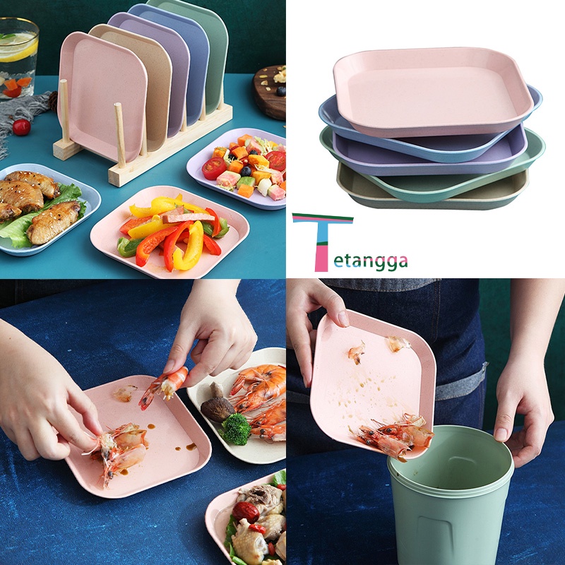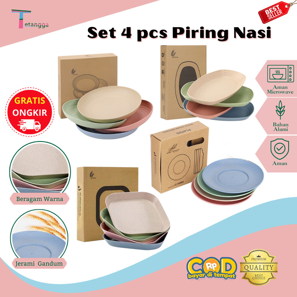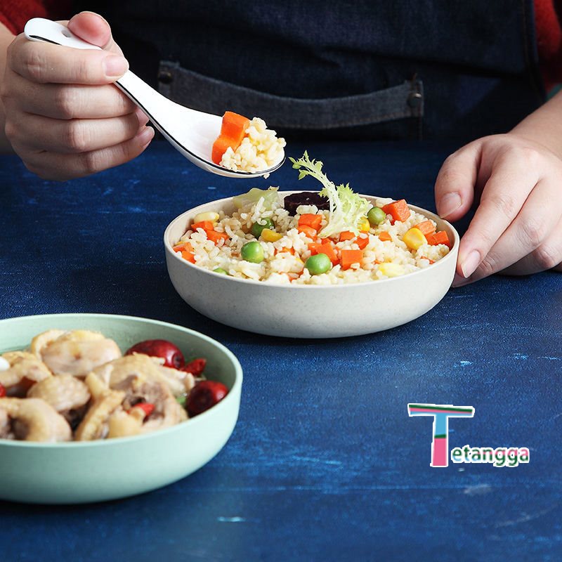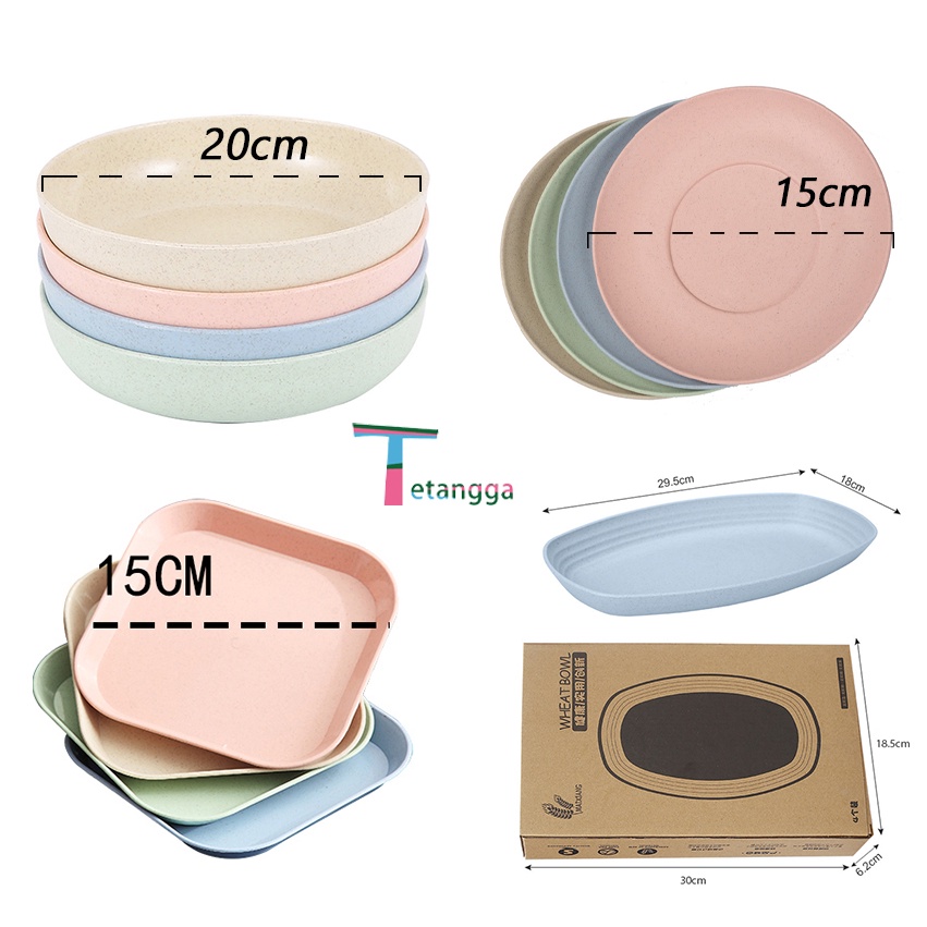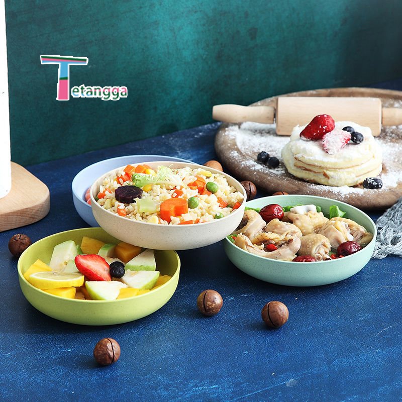 Set 4 pcs Piring Nasi Round Plate Piring Makan Wheat Straw Rice Plate Warna Warni Set 4 Pcs Piring Saji