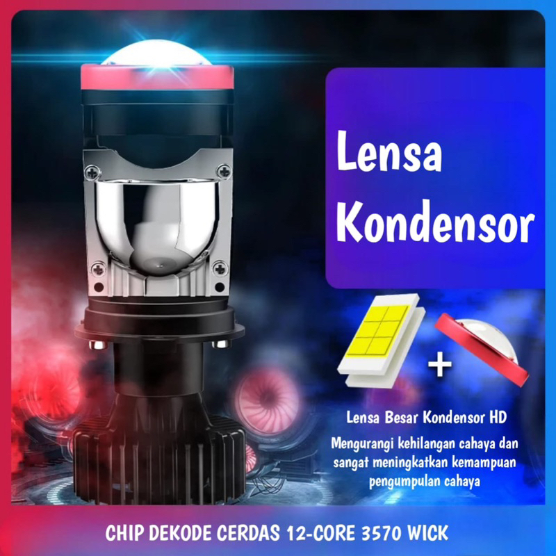Lampu LED Mobil Motor Mini Projie Y8/80w Y7/100w soket H4 3pin Super Terang(harga 1set 2pcs