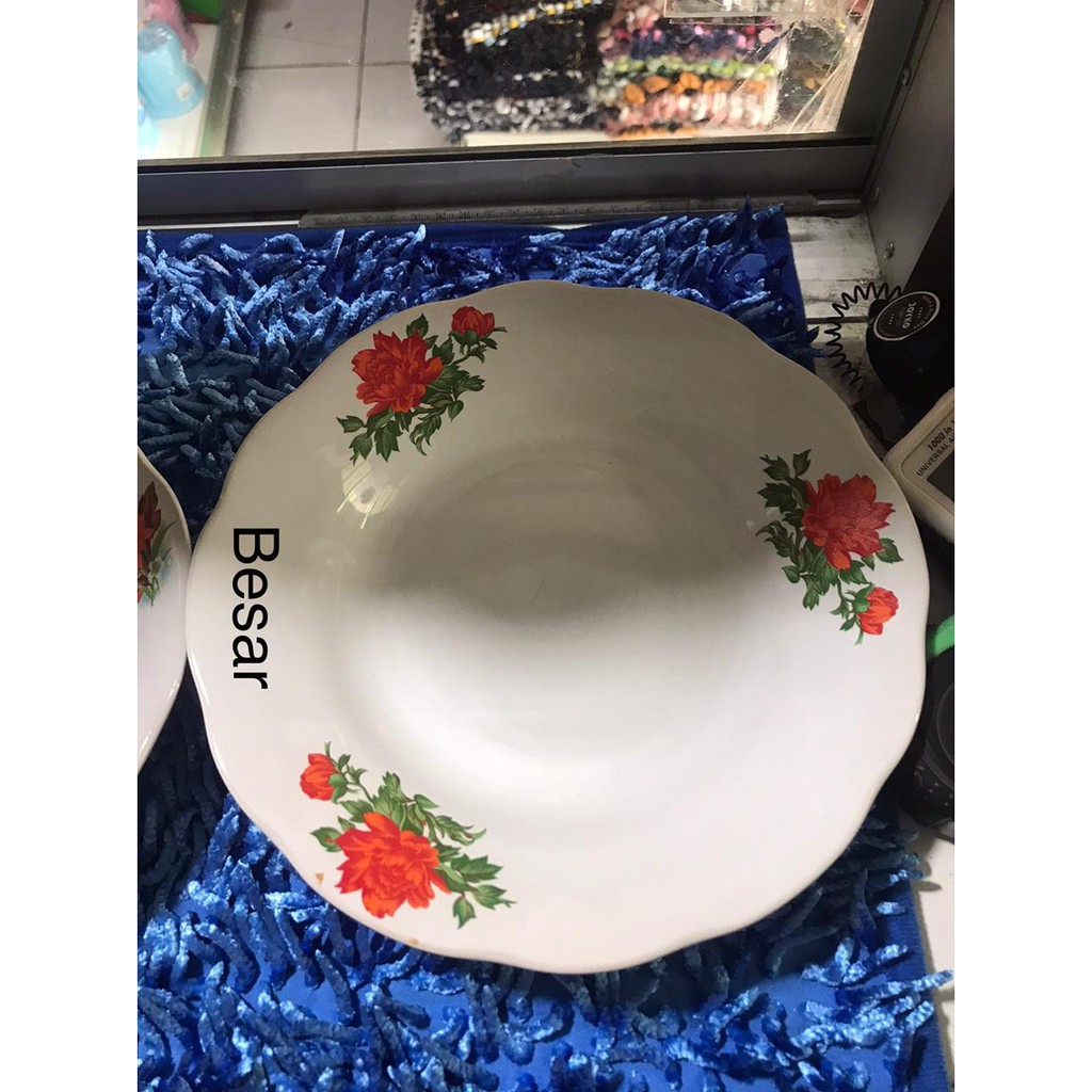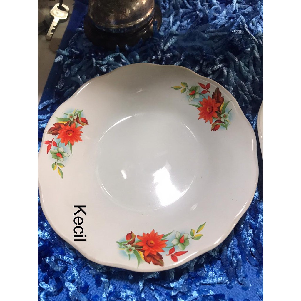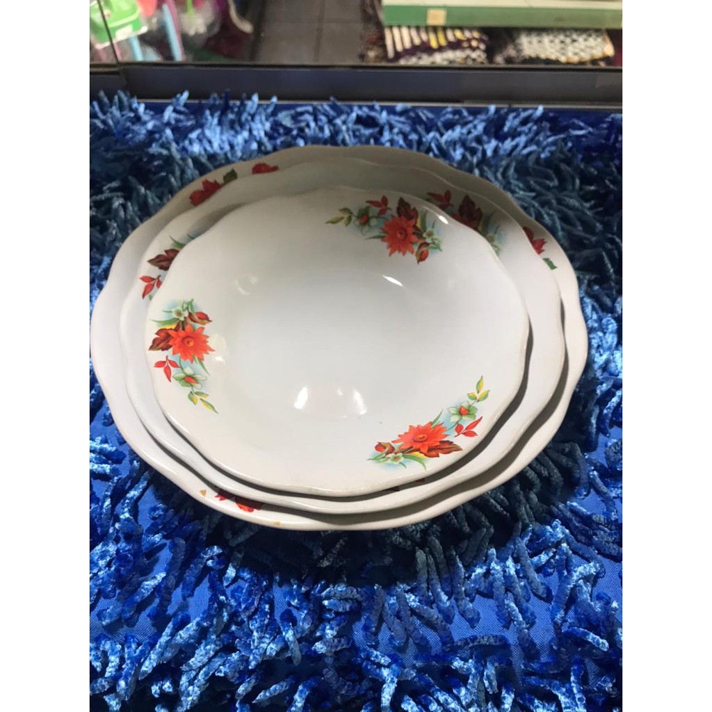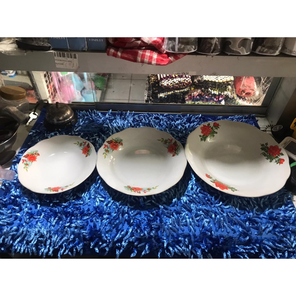 Piring Makan Keramik Lucky Putih Motif Kembang MERAH - Piring Serbaguna 3 Ukuran
