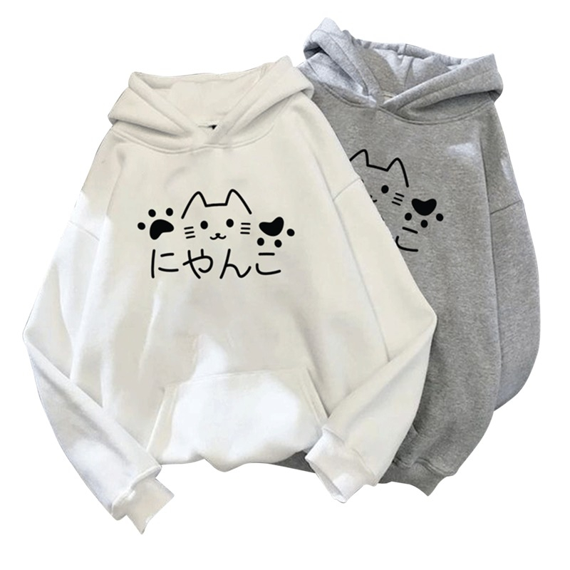 Parisdivarious Sweater Hoodie Jemper Kucing Lucu Bahan Fleece Size S - XXL (Pria & Wanita)