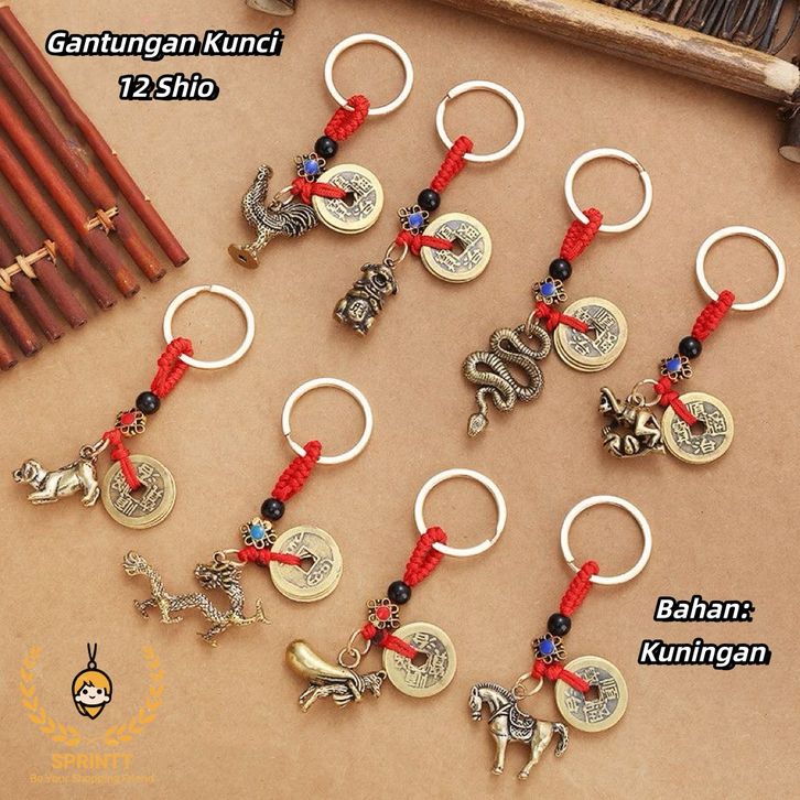 [SPRINTT] GK004 Gantungan Kunci kuningan tradisional chinese 12 shio plus koin keberuntungan hoki