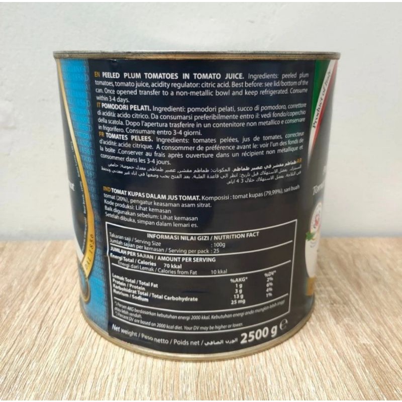 Cirio Peeled Tomatoes Pelati 2.5kg - Tomat Kupas Italy Plum 2500gr